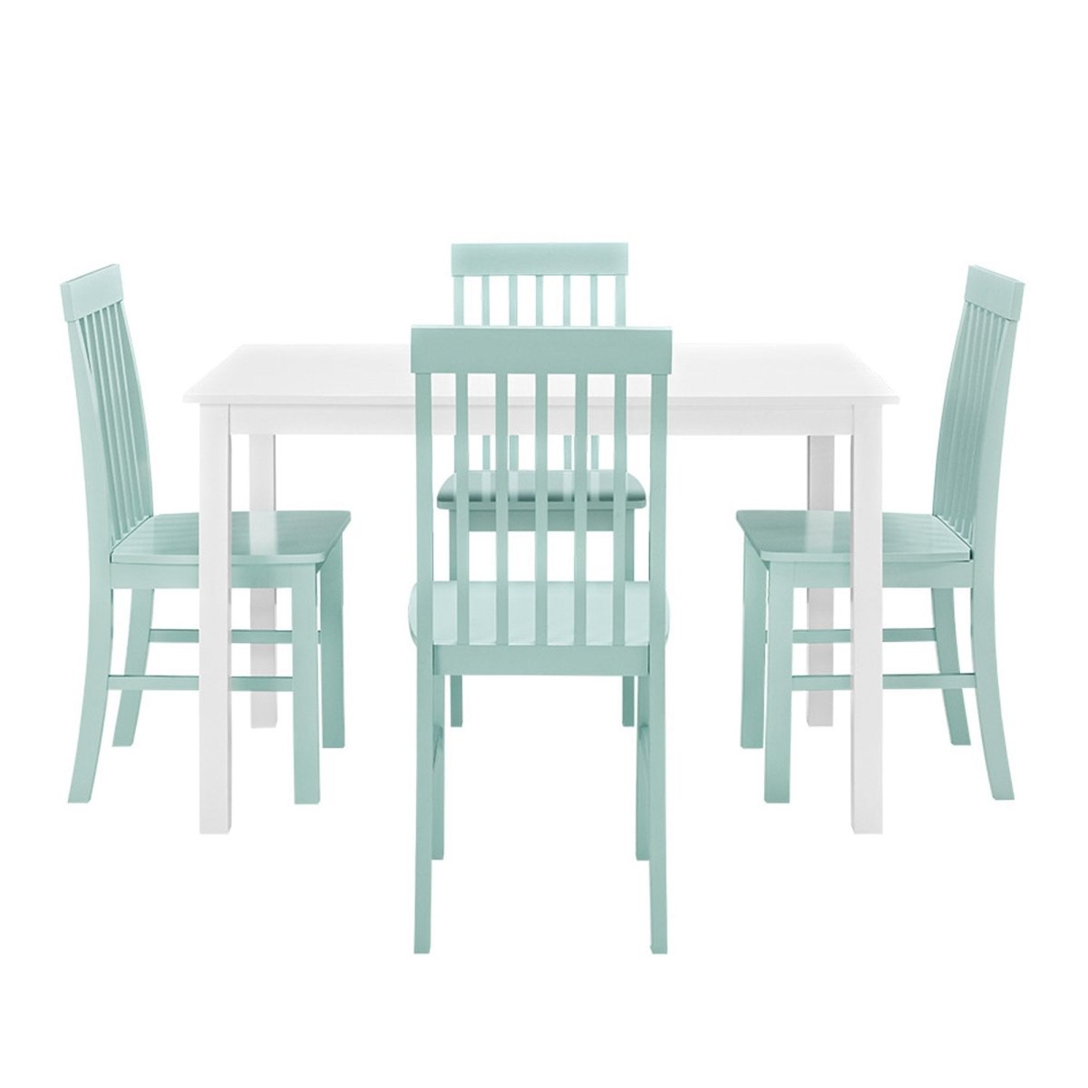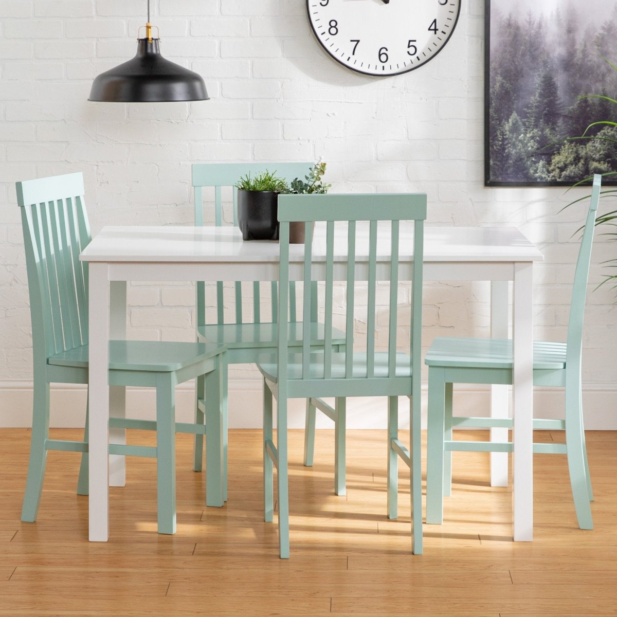Regular price $461.00Take your kitchen or dining area to the next level with our modern style dining set. Including four slatted back chairs with slightly curved angles throughout, in a bright colored finish. The table features a classic, straight-line design with a painted, fresh white finish for a simple, yet elegant table. Enjoy meals with your family, with this stylish dining set.