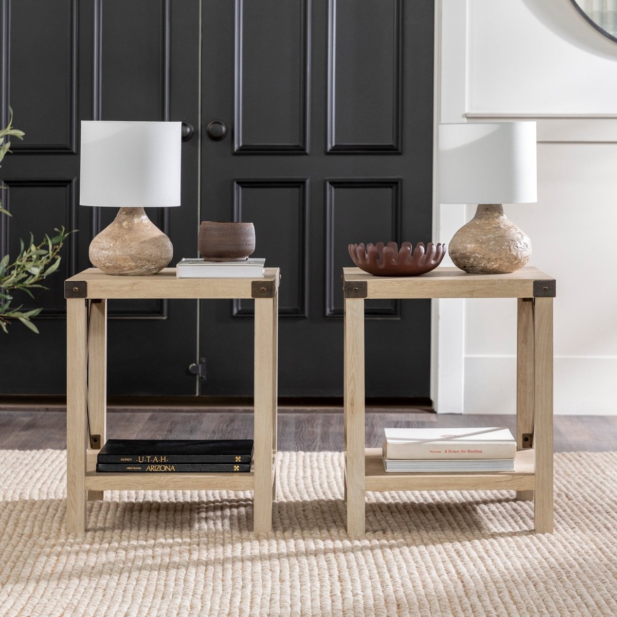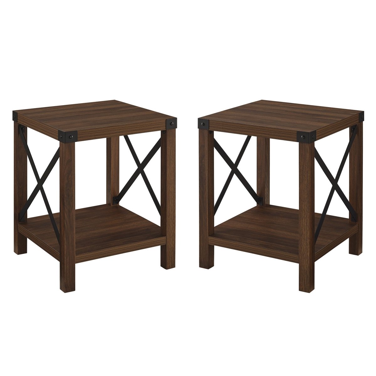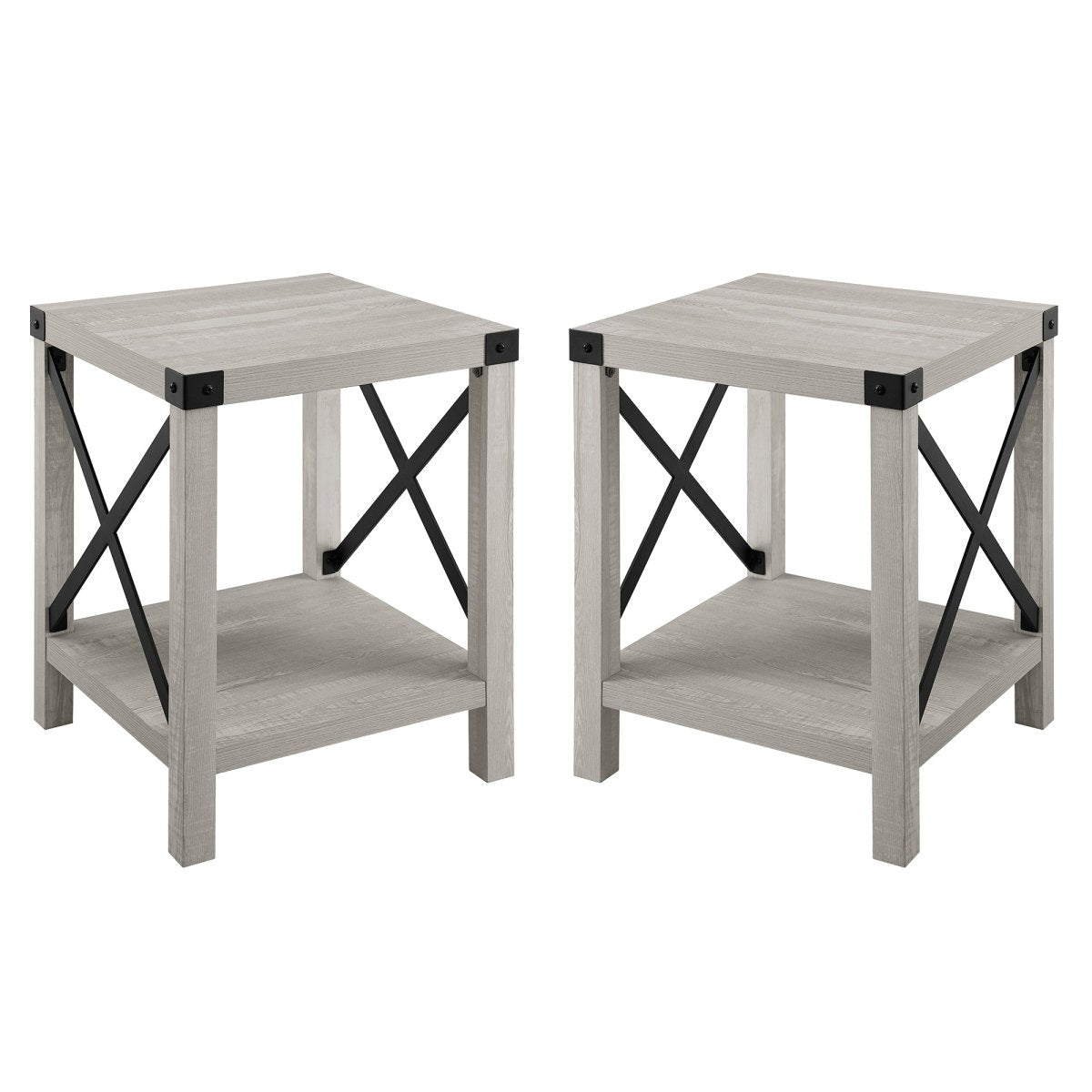 Regular price $252.00Come home to comfort and country-inspired charm when you debut these accent tables in your space. Their mixed-material silhouettes and metal details create the ideal backdrop for stunning living room décor. A bottom shelf on each piece leaves room for storage baskets, botanical interests, or stylized trays. Pair with other pieces from the collection to refine your cozy abode with just the right touch of industrial intrigue. When it comes to harmonizing comfort and style, X marks the spot with this farmhouse-inspired duo.