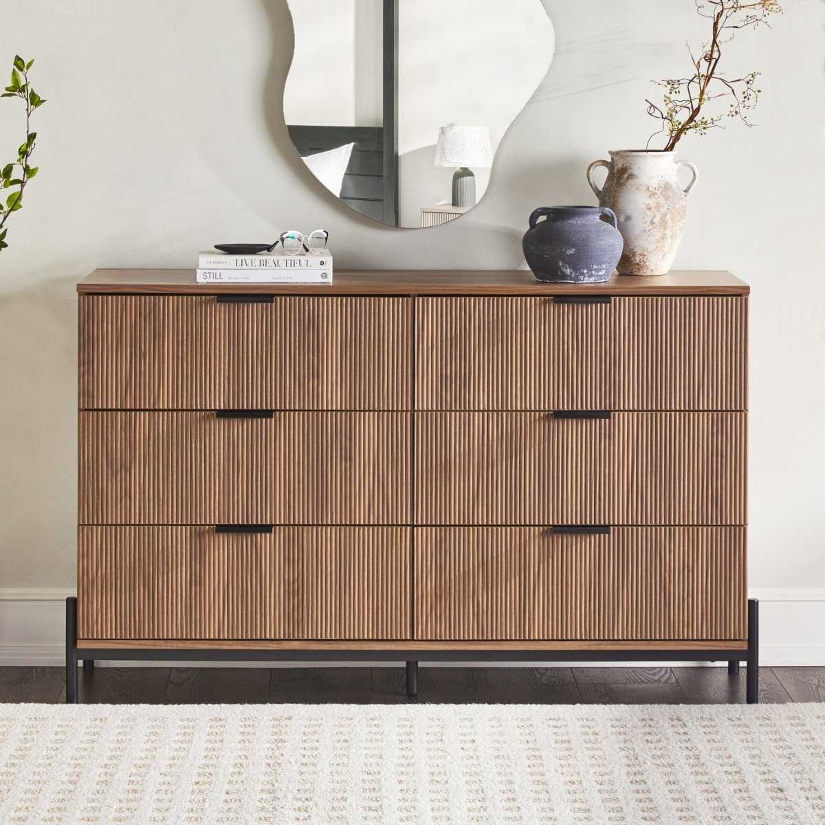 Regular price $490.00Bring the mid-century Scandinavian look into your home with this Paris Collection. The warp-resistant and durable materials ensure your dresser or nightstand will hold up to everyday use, while the Scandinavian reeded wood drawer fronts add a unique detail that elevates the design. Tab pulls and metal drawer slides make it easy to open and close drawers smoothly, and the spacious top is a great place to display art or place a lamp.