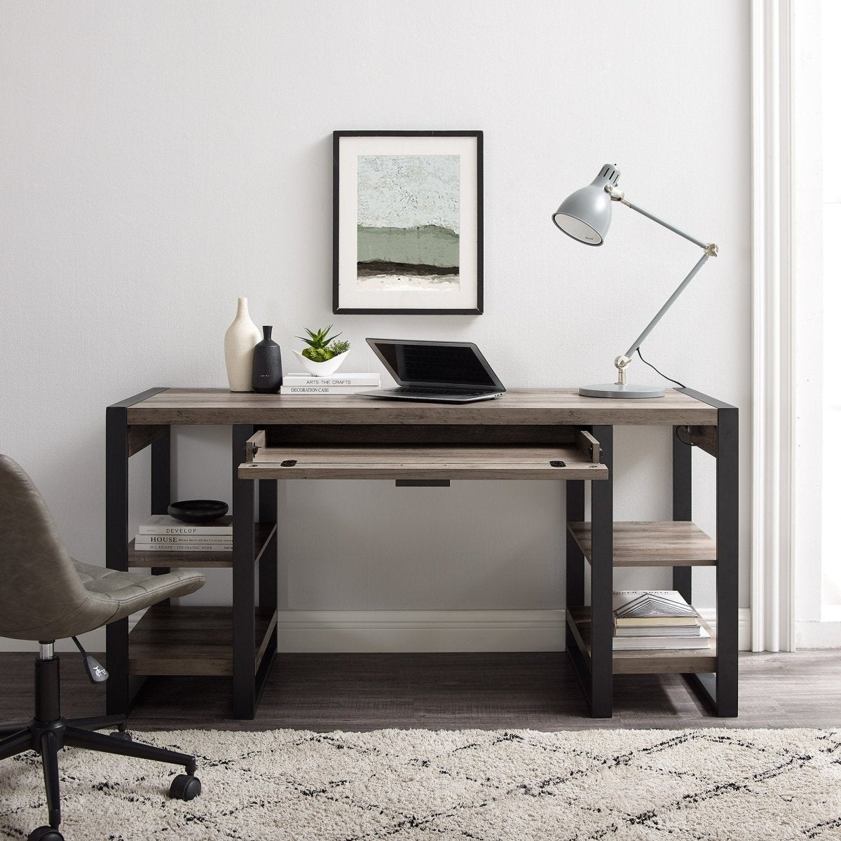 Regular price $146.00Complete your home office with this urban industrial style computer desk. Features a built in USB port and AC plug-in for additional power supply, that way you can charge your laptop or phone while in use. Its open side shelving and pull-out drawer provide ample storage space to fit your office essentials. Crafted from warp-resistant MDF and powder-coated metal legs for a sturdy yet stylish office desk.