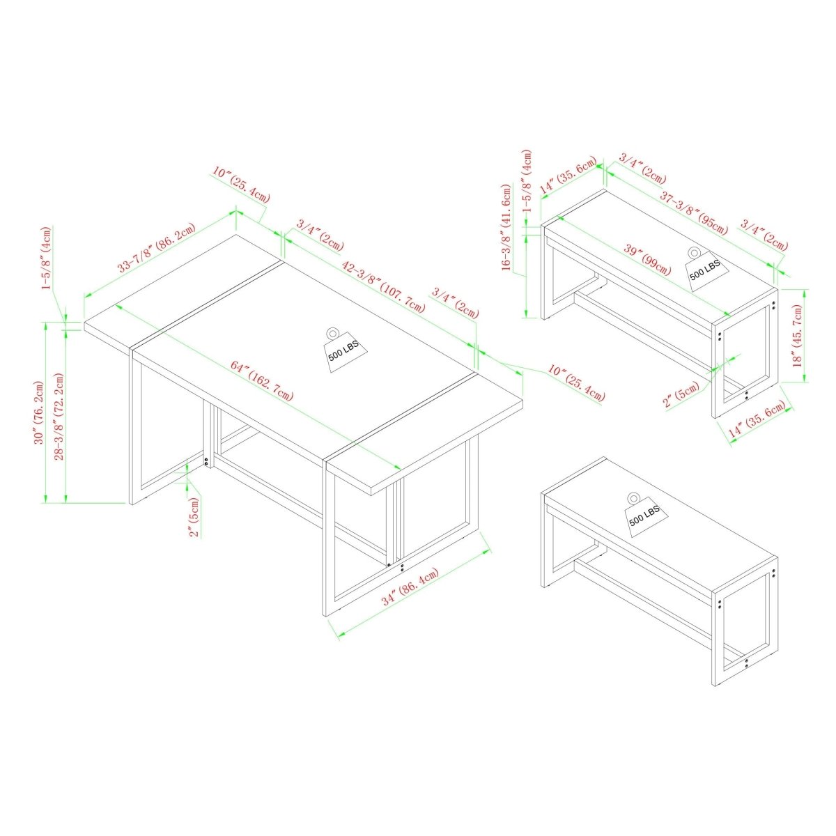 Regular price $189.00Family dinners, rousing card games, and late-night homework sessions with a bowl of cereal by your side. Whatever this dining set is used for, it’ll be your new favorite companion for anything and everything. The dining table is not only stylishly urban, but it’s also finished with a moisture-resistant melamine coating, so spills won’t ruin the laminate finish. With a weight capacity of 500 pounds and matching build with the table, the two benches boast as much functionality as they do modern design. Whether it’s the newest addition to your kitchen, dining room, or studio apartment, it’s bound to help you make mealtimes more memorable.