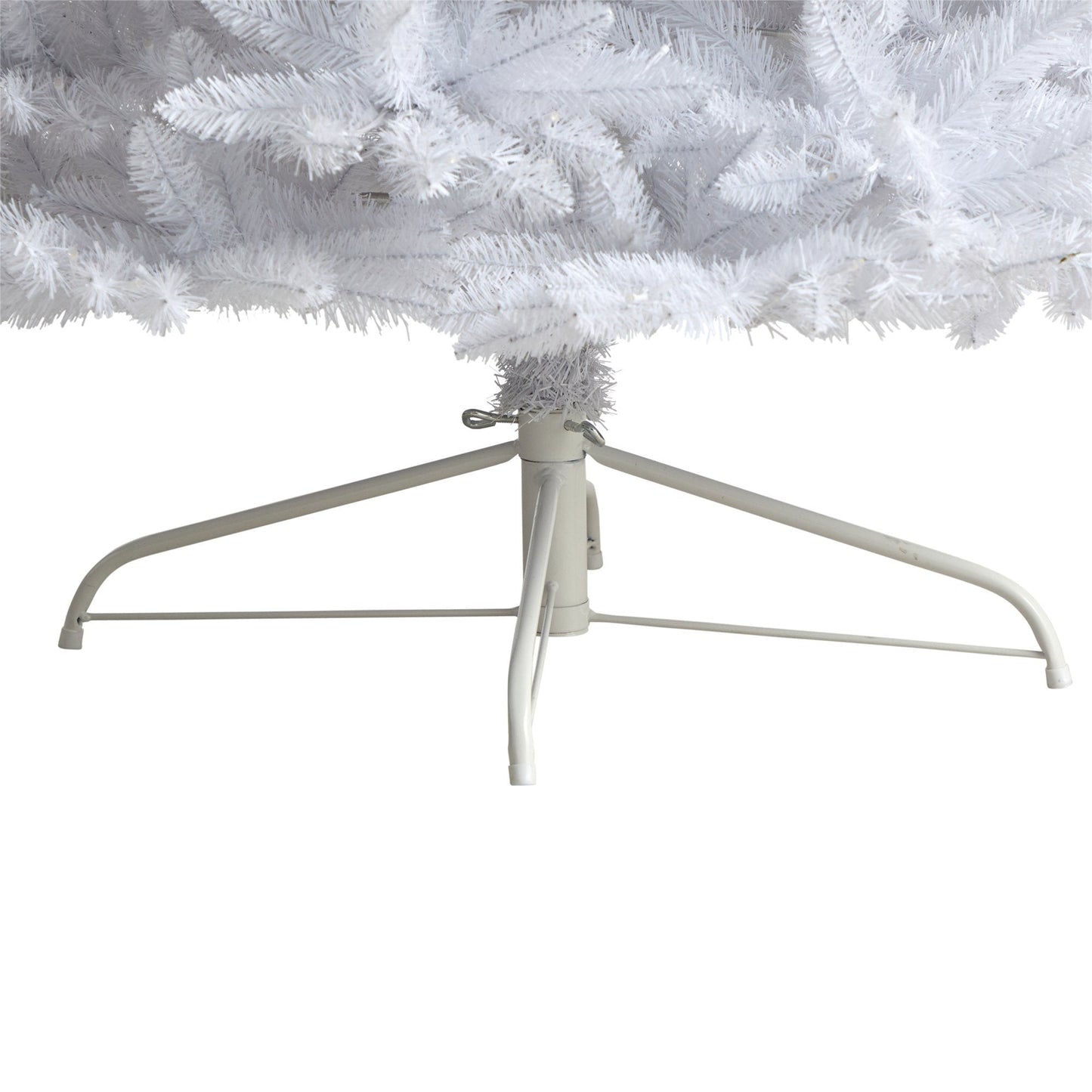 Are you dreaming of a white Christmas? Fulfill all your dreams with this white artificial Christmas tree. Inspired by nature, this tree has a slim silhouette that mimics its real counterparts' natural foliage and texture. With 2420 bendable branches, you can easily display all your favorite ornaments. Save time and money with the pre-strung 800 LED lights. Standing 10' from a metal stand, curate in any area. Perfect for a family room, living room, or home office.