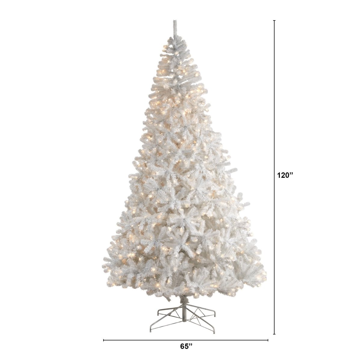 Complete a winter-inspired Christmas decor scheme this holiday with the help of this White Artificial Christmas tree. Completely maintenance-free, this all-white fake Christmas tree boasts an array of soft looking foliage made up of 2200 bendable branch tips to accent with your own personalized ornaments, all beautifully designed in a palette of snow white. Pre-strung with 800 LED lights, iluminate any area.Carefully stabilized on a metal stand and standing 10’ tall when in full display, this white beauty will undoubtedly create a stand-out focal point all throughout the holidays - year after year.