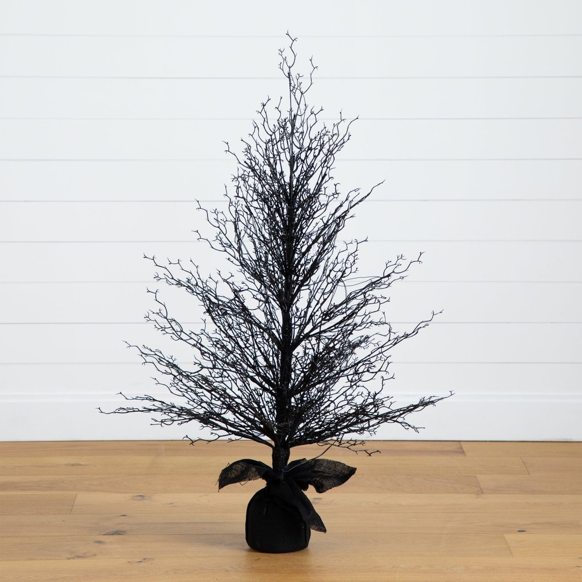 This 4-foot artificial black twig tree brings sophisticated Halloween and fall styling to your home. The tree features 63 warm white LED lights integrated throughout its black branches, creating ambient lighting perfect for autumn evenings and Halloween celebrations.