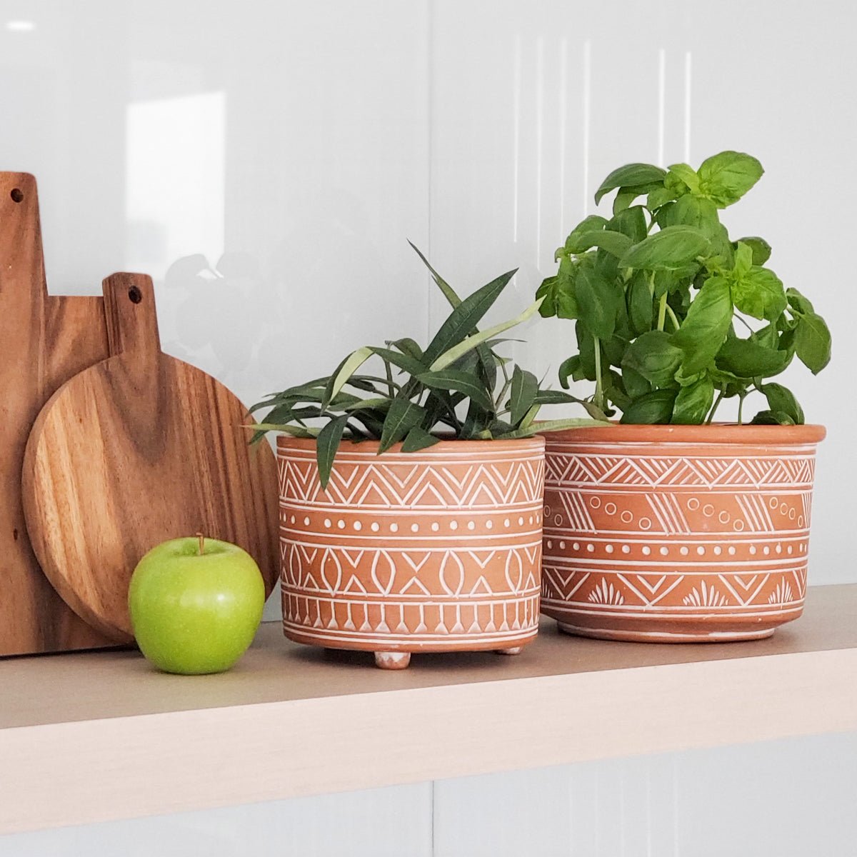 Suitable for both indoor and outdoor use, this terracotta planter adapts to different environments. The natural clay color complements various decor styles, from modern boho to minimalist contemporary. The geometric etched patterns add texture without overwhelming surrounding design elements.