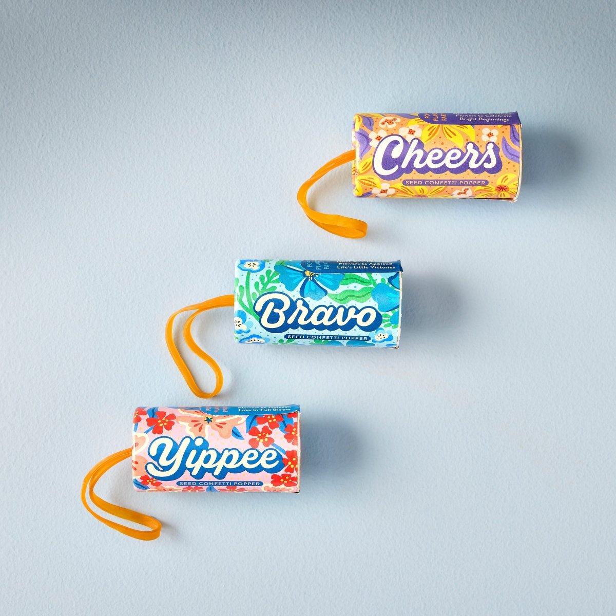 Each popper variety contains a specific flower seed combination designed for different occasions: