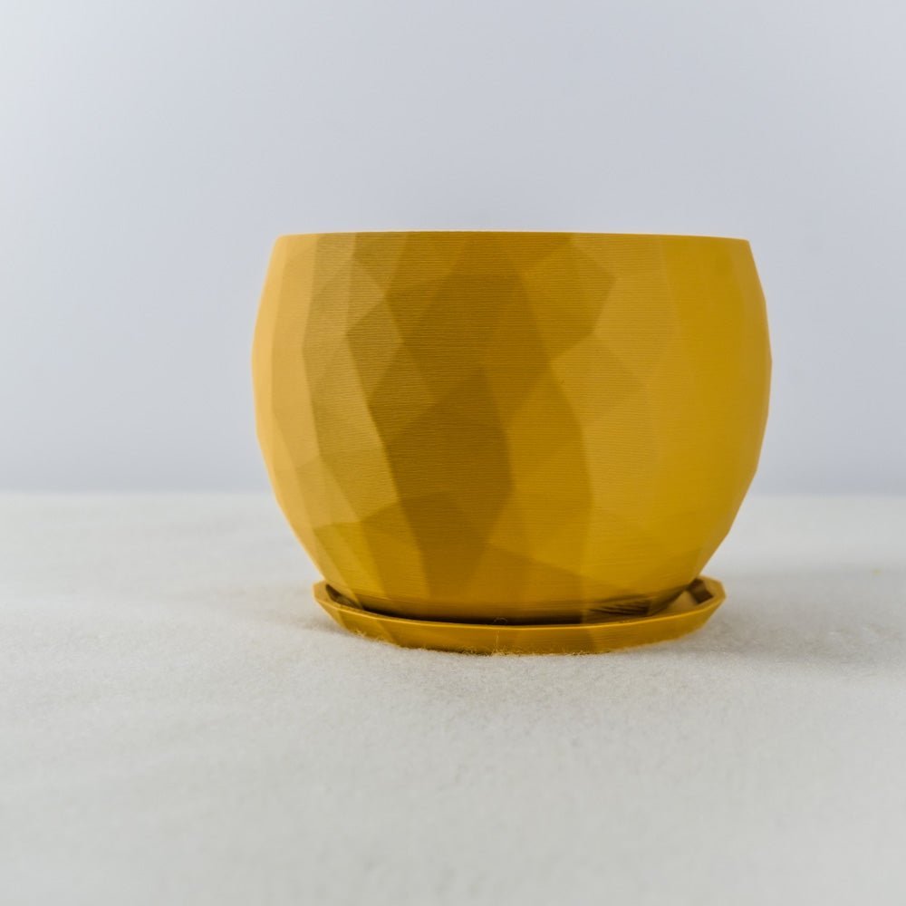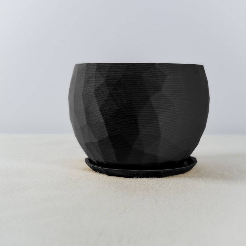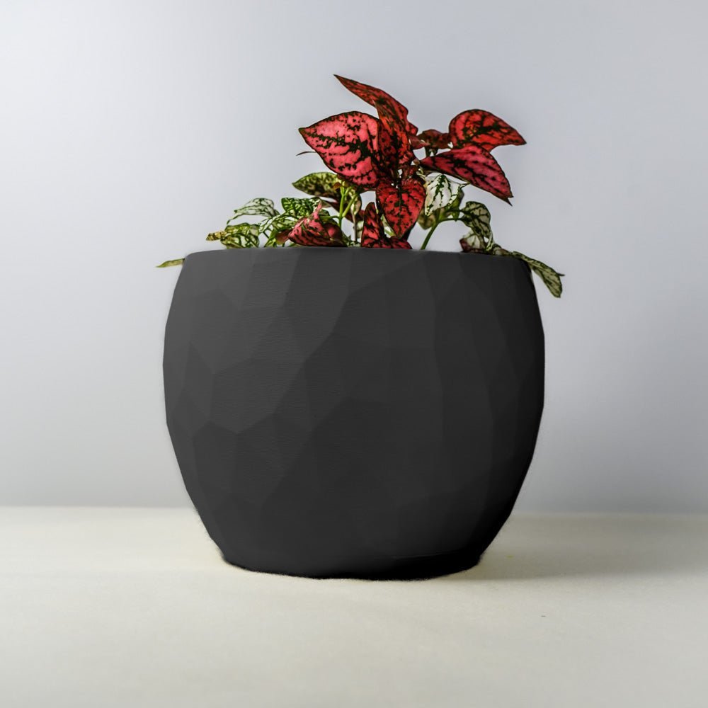 This geometric planter features an original Voronoi design that creates a distinctive pattern through 3D printed construction. The mathematical tessellation structure provides both visual interest and structural integrity while maintaining a lightweight profile.