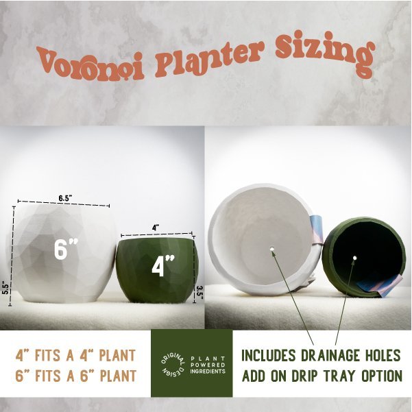 Made from high-quality PLA thermoplastic polymer derived from upcycled materials including corn, beets, and wheat grass. This material is 100% biodegradable, recyclable, and compostable. The porous nature of 3D printed PLA provides excellent breathability and aeration for healthy root development.