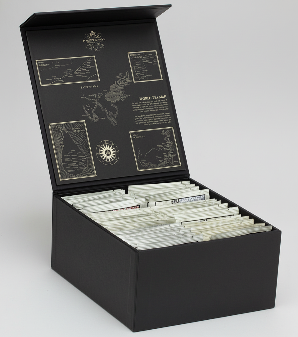Harney Heritage wrapped sachet tea chest featuring assorted tea flavors in elegant packaging