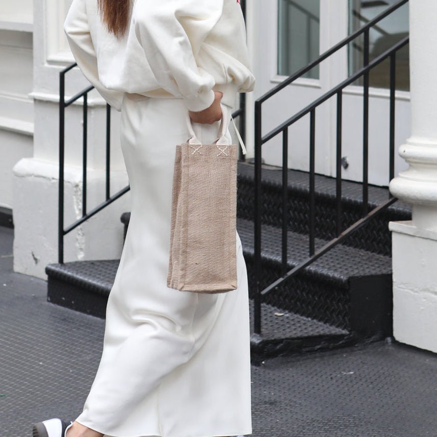 The reusable design makes this wine bag an eco-friendly alternative to disposable gift wrap. Available in natural, white, and gray color options, you can choose the shade that best suits your gifting occasion. The jute material is both sustainable and biodegradable, aligning with environmentally conscious values.