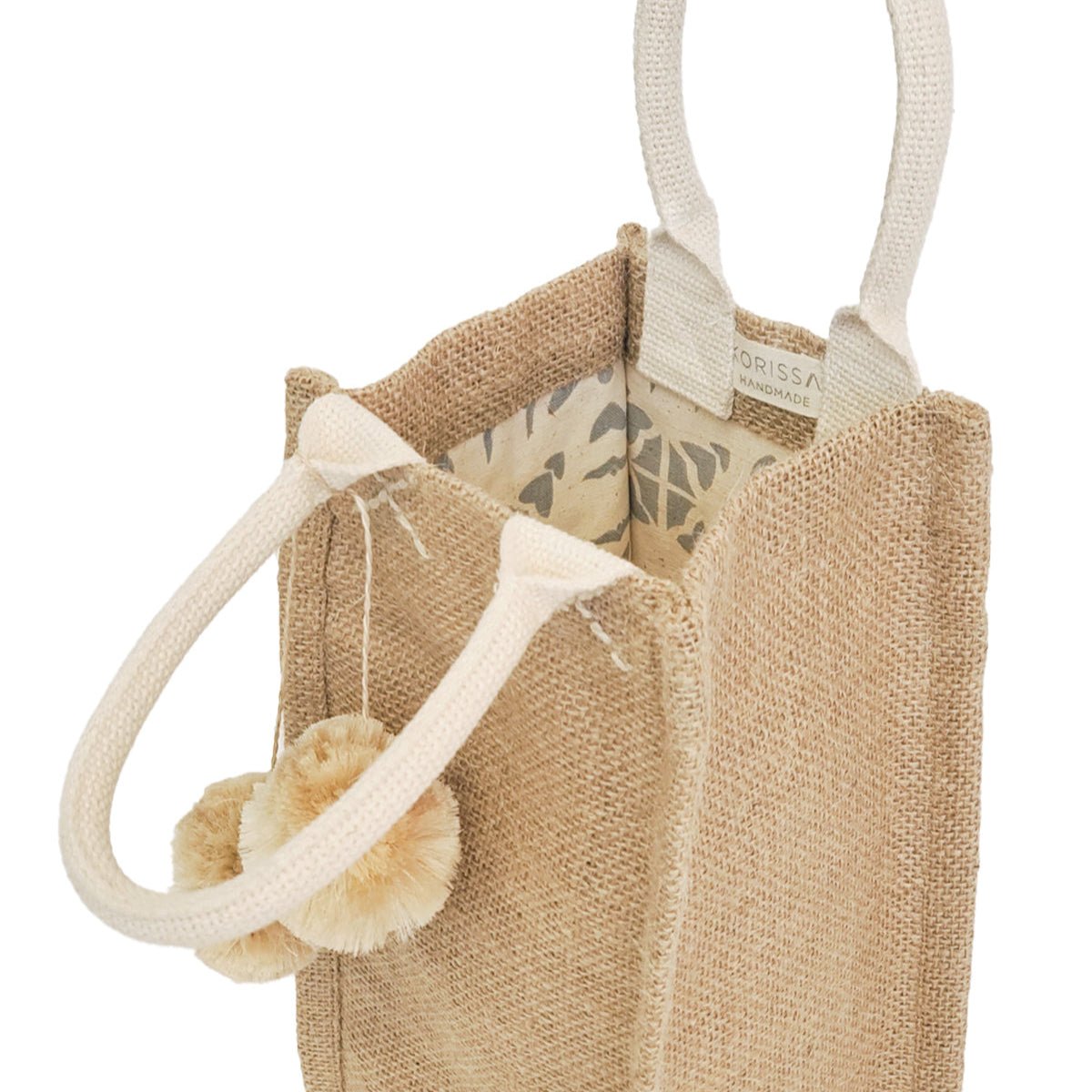 This Reusable Jute Burlap Wine Bag combines style with sustainability for your wine gifting needs. Crafted from natural burlap fabric with canvas lining, this bottle carrier provides both protection and presentation for your cherished bottles. Each bag is designed and curated by Korissa, sustainably handmade by Fair Trade artisans in Bangladesh.