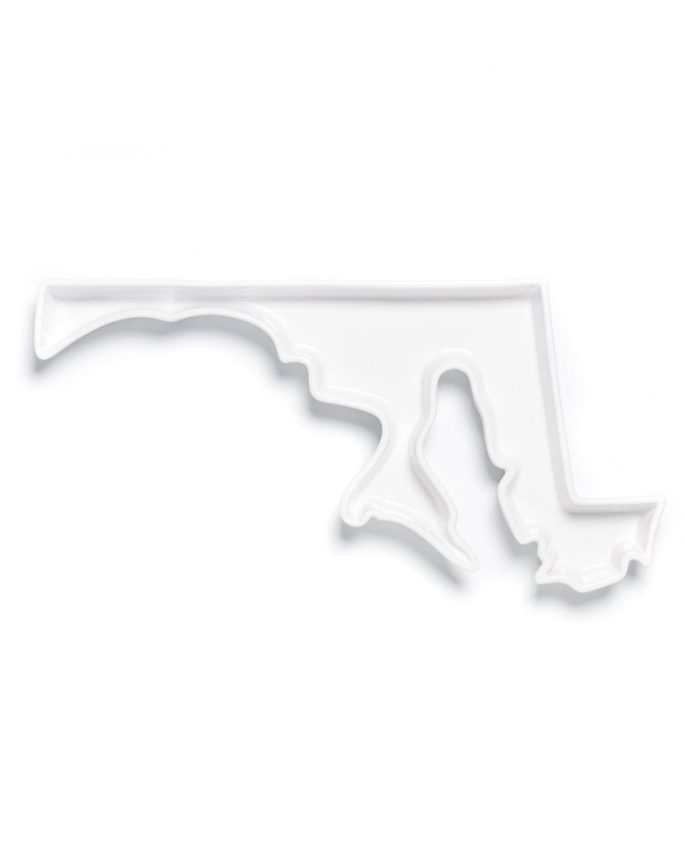This 17-inch porcelain platter captures Maryland's distinctive geographic outline in functional serveware. The state-shaped design honors the coastal heritage of the Old Line State while providing practical serving space for entertaining. Crafted from high-quality porcelain with a glossy white glaze, this platter creates a non-stick surface that transitions seamlessly from oven to table.