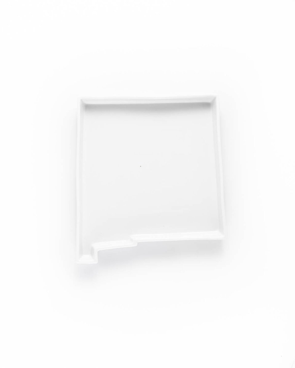 This New Mexico-shaped porcelain serving dish combines functional bakeware with state pride. Crafted in high-fire porcelain and sealed with a glossy white glaze for a non-stick surface, this state-themed bakeware serves casseroles, dips, entrees, appetizers, pies, cakes, holiday dishes, and family recipes with New Mexico style.