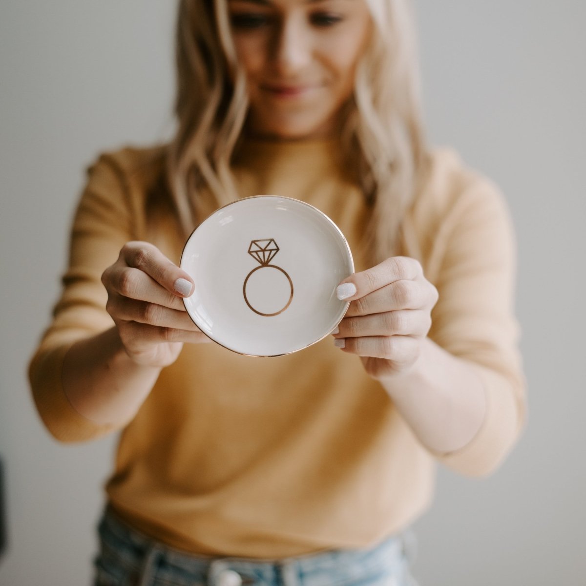 Ceramic Ring Dish 4" - Gold Foil Engagement Ring Holder Cream