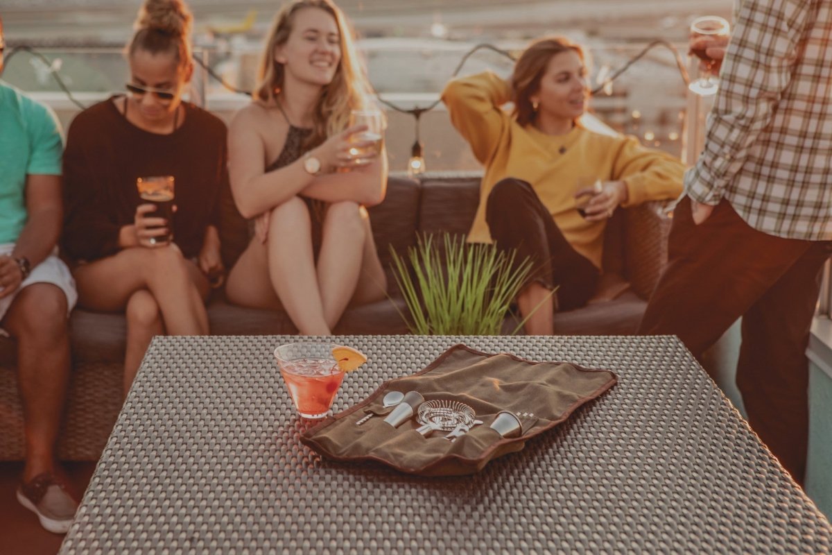 This portable bar kit works for mobile bartending services, catering events, camping trips, picnics, and outdoor gatherings. It serves as a practical gift for new homeowners, apartment dwellers with limited storage, or anyone who hosts dinner parties. The compact design makes it ideal for small kitchens where counter space is limited.