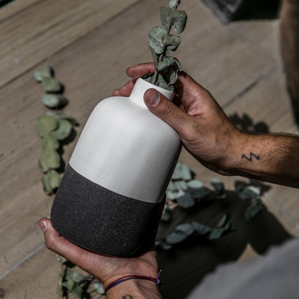 Ceramic Vase - Matte & Glaze Finish, Minimalist Design, 7.6"H