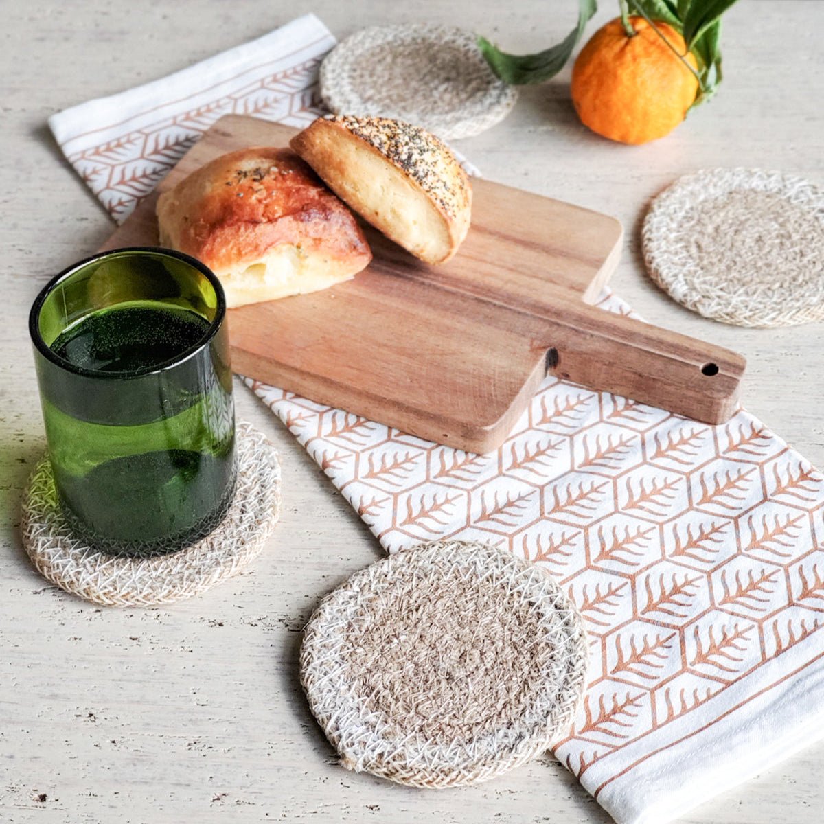 Each coaster is sustainably handmade by Fair Trade artisans in Bangladesh, designed and curated by KORISSA. The artisan craftsmanship ensures quality construction while supporting ethical manufacturing practices. Because these coasters are handcrafted, each set features slight variations in design, color, and size that add to their authentic character.
