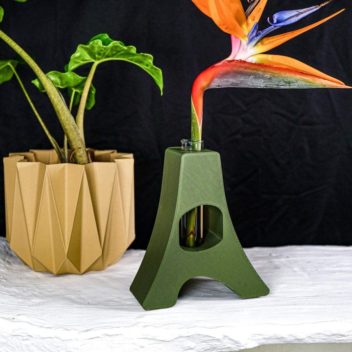 Each stand is hand designed and 3D printed using high-quality PLA thermoplastic polymer. This material is derived from upcycled sources including corn, beets, and wheat grass, making it 100% biodegradable, recyclable, and compostable. The manufacturing process combines modern technology with environmental responsibility.