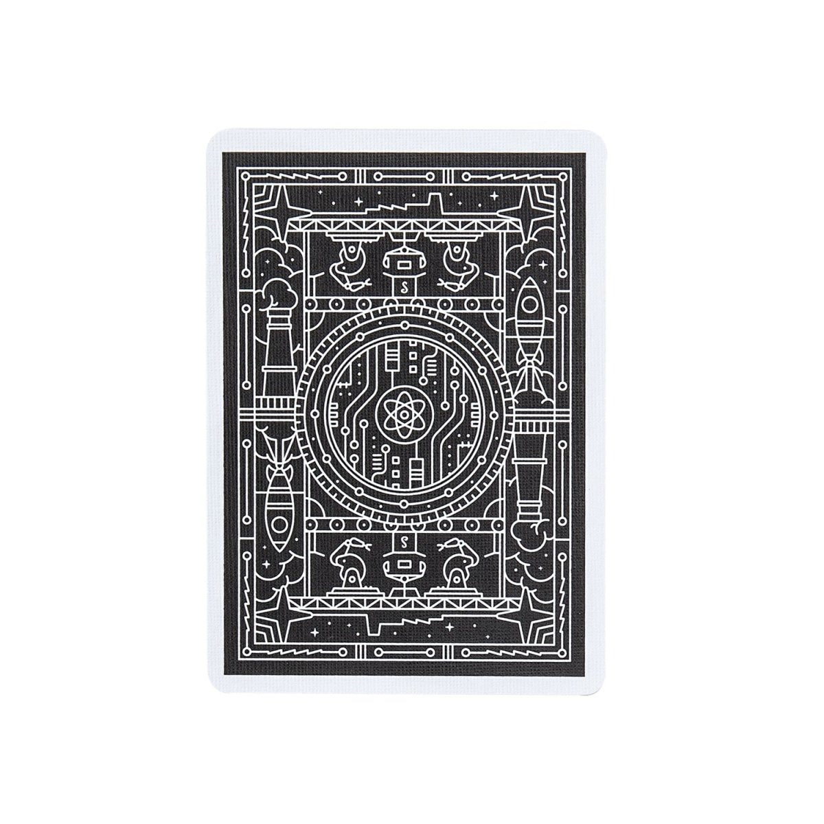 The deck transforms traditional playing cards into a collectible set with its robot-themed design. Face cards showcase individual robot characters, each with distinct features and factory roles. The artwork invites exploration, with details that reveal the interconnected world of Stellar Factory's automated workforce. This makes the deck suitable for both gameplay and display as a conversation piece.