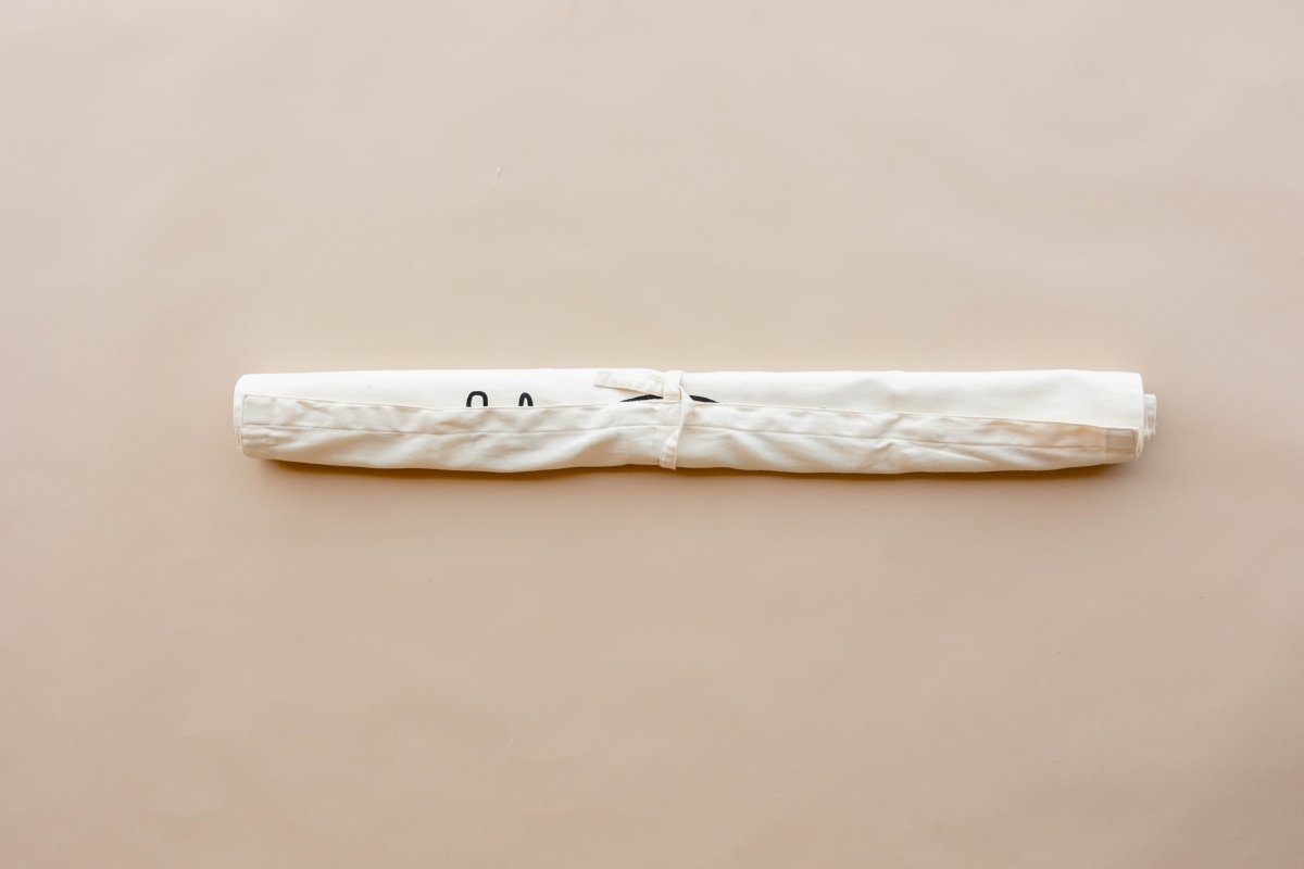 Built-in sewn ties allow you to roll up the mat for easy transport and storage. Take it to grandparents' houses, on trips, or simply store it away when not in use. The durable natural canvas construction withstands regular rolling and unrolling.