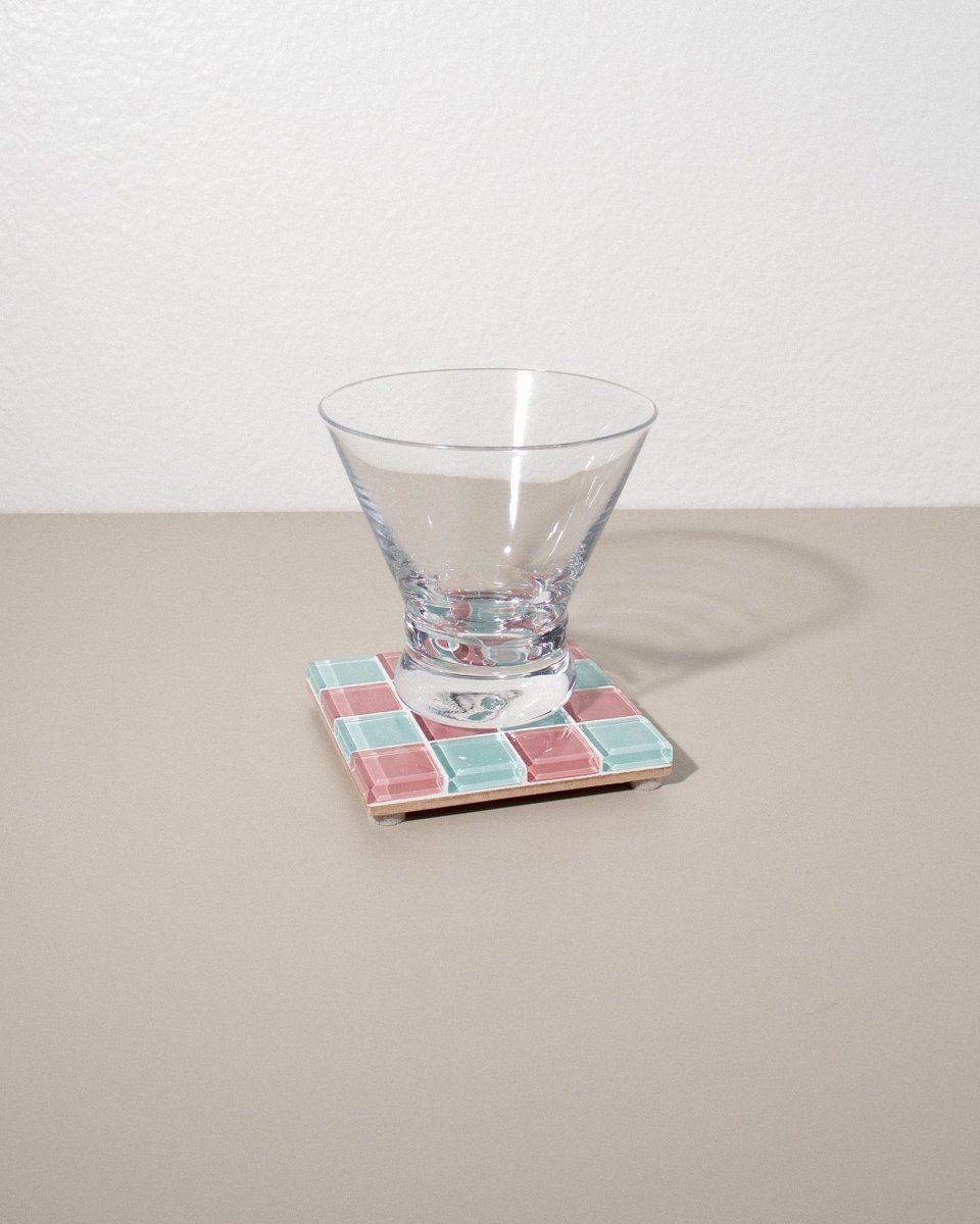 These handcrafted glass tile coasters combine functionality with visual appeal. Each piece features a bubble gum pink design that adds a pop of color to your coffee table, desk, or bar area. The thick glass construction provides reliable protection for your furniture against moisture rings and heat marks from hot beverages.