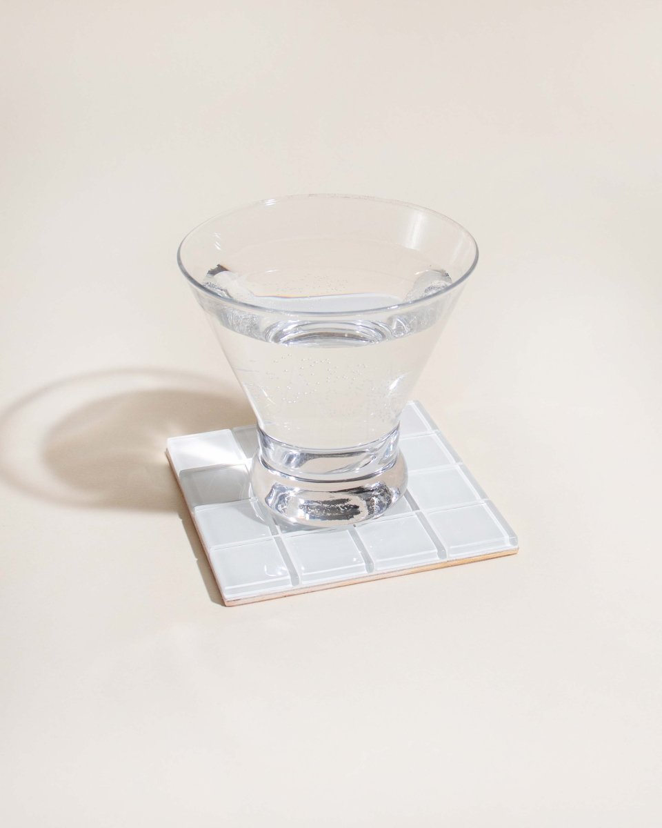 These handcrafted glass tile coasters combine functionality with a clean, glossy white finish that complements any decor. Built with thick, resilient glass tiles, each coaster measures 4 inches by 4 inches and stands 0.5 inches high, providing reliable protection for your furniture from hot beverages, cold drinks, and condensation.