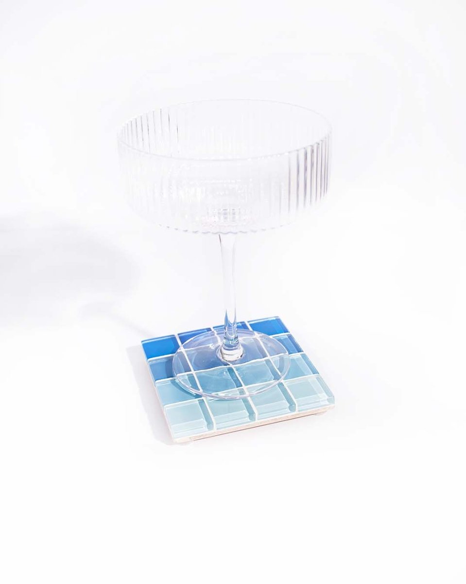 These handcrafted glass tile coasters bring coastal charm to your home bar and entertaining space. Each coaster features an ombre design inspired by the turquoise waters of the Maldives, combining functionality with decorative appeal.