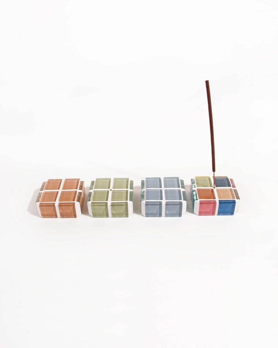 This handcrafted glass tile incense holder combines functionality with contemporary design. The compact cube measures 2"L x 2"W x 1"H, providing a stable base for your favorite stick incense while adding a modern accent to any space.