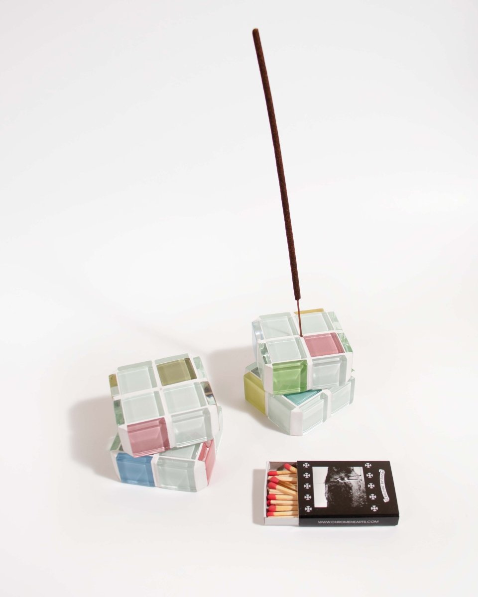 This glass-tiled incense holder combines functionality with modern design. The compact cube measures 2 inches square with a 1-inch height, providing a stable base for your incense sticks while maintaining a minimal footprint on any surface.