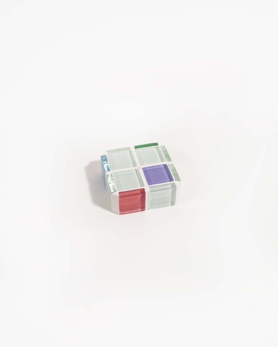 The cube design provides stable support for incense sticks while effectively catching ash during use. Glass tile construction ensures durability and simplifies maintenance - a simple wipe-down after each use keeps the holder clean. The heat-resistant glass tiles remain safe to touch during and after burning incense, protecting surfaces underneath from heat damage. The geometric form creates a stable base that prevents tipping, ensuring safe incense burning.