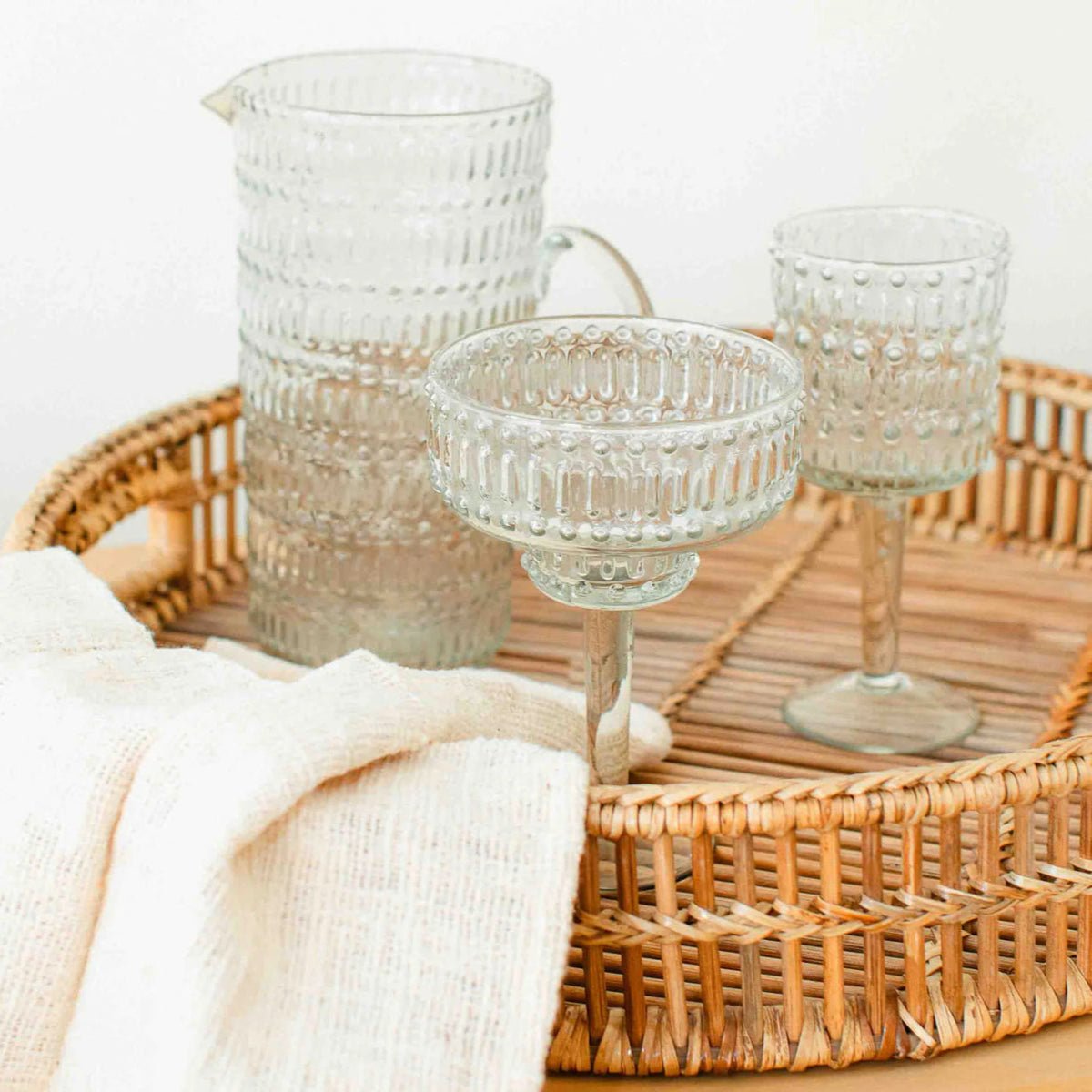 The Morse Glass Pitcher transitions seamlessly from casual weekday dinners to weekend entertaining. The textured pattern catches light beautifully on formal tables while maintaining the approachability needed for daily use. Use it for morning orange juice, afternoon iced water, or evening sangria.