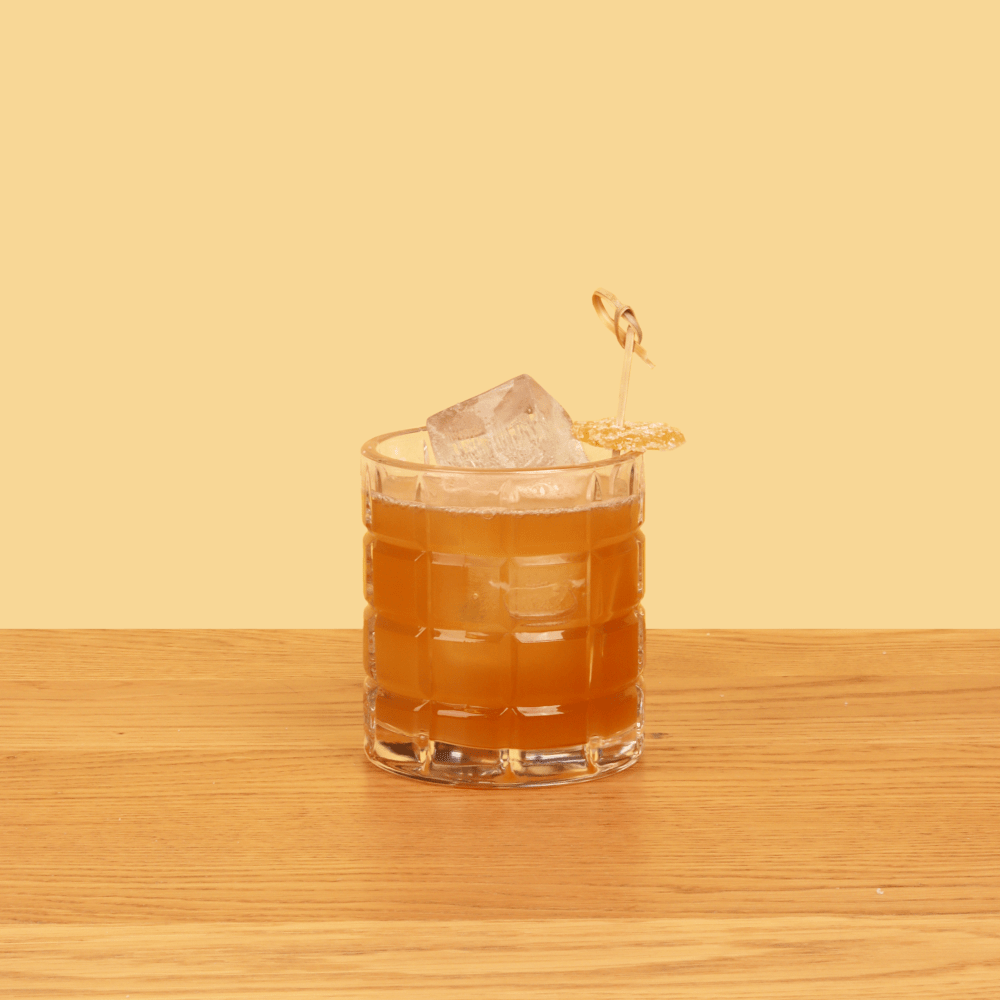 Add ingredients to a shaker tin and add ice. Shake for 10-15 seconds and strain into a rocks glass over fresh ice. Garnish with Candied Ginger if available, or Lemon Wheel or Wedge if not.