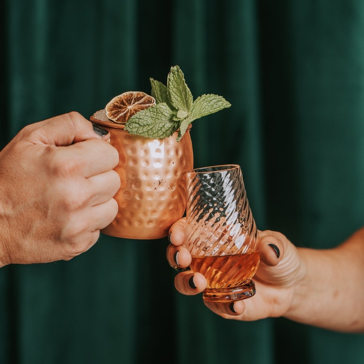 This hammered copper mule mug brings authentic craftsmanship to your home bar or kitchen. Made from 100% solid copper with a 100% brass handle, this mug delivers both visual appeal and traditional functionality for serving Moscow Mules and other cocktails.