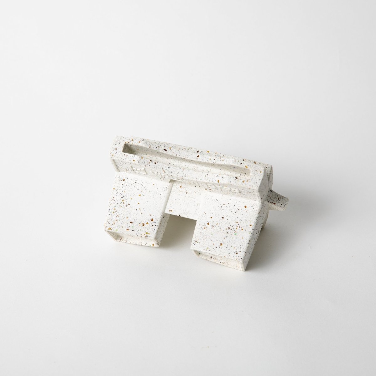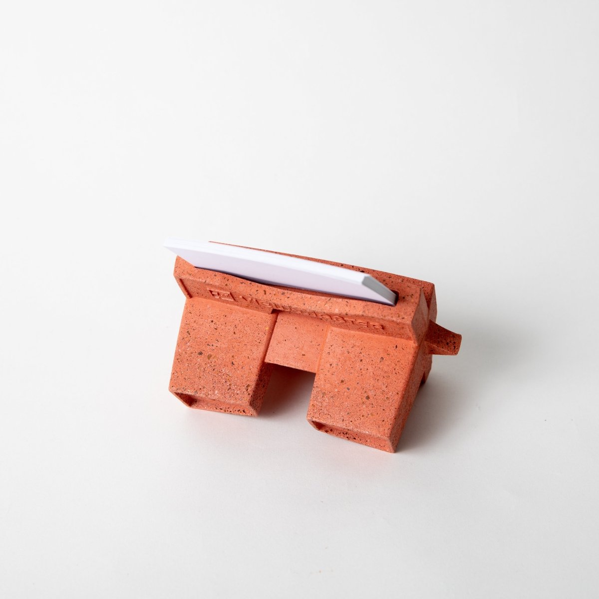 This handmade terrazzo business card holder combines retro aesthetics with sustainable materials. Each piece is individually hand-cast from concrete mixed with recycled glass, creating a unique terrazzo pattern that adds character to any desk or workspace.
