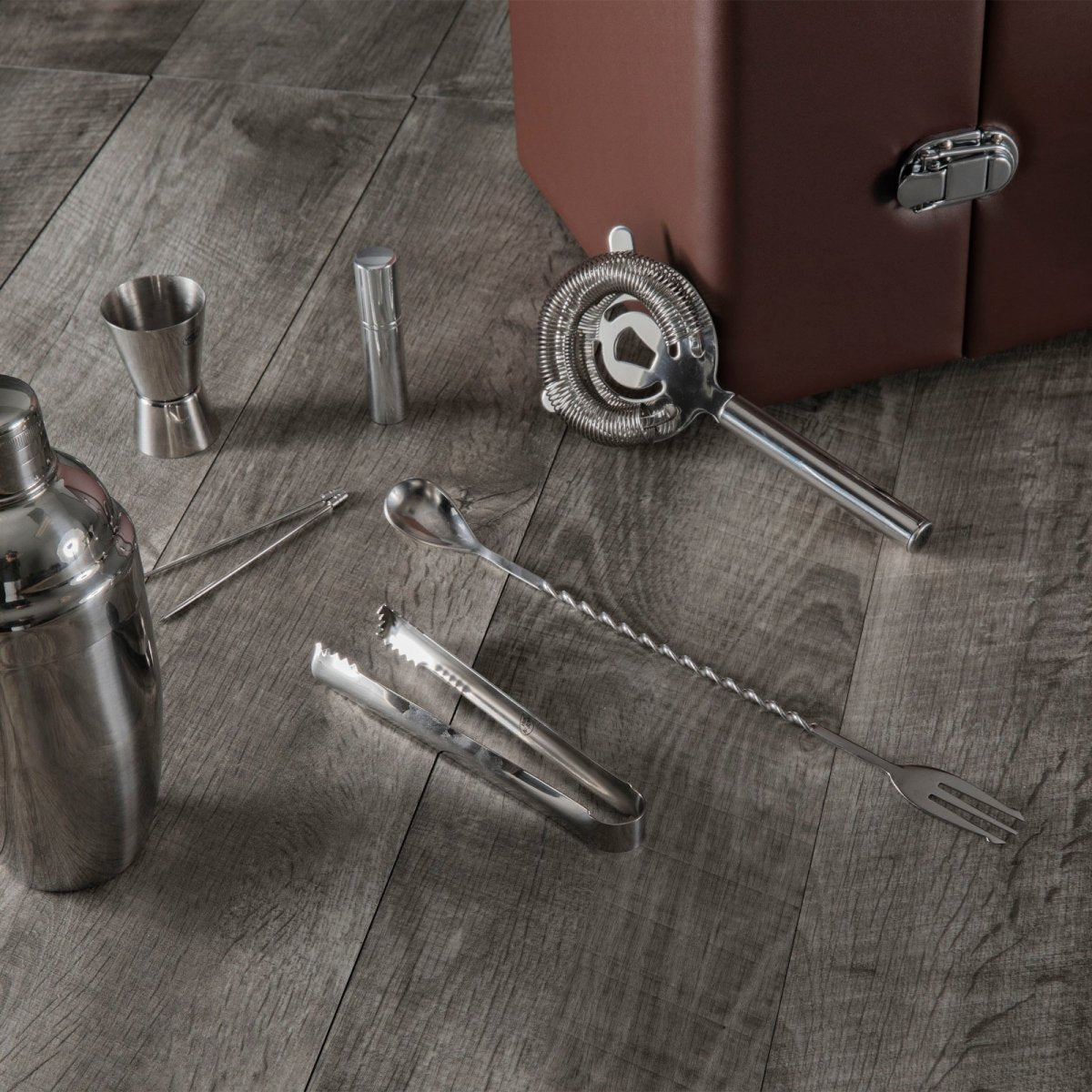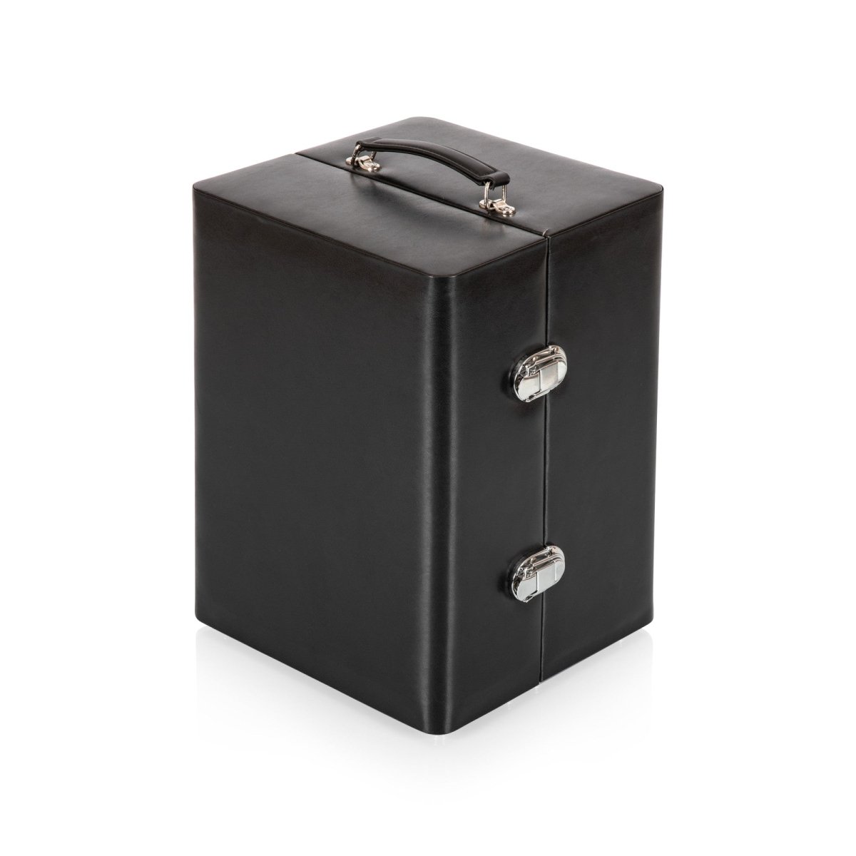 Regular price $299.95From the Roaring 20s to the 2020s, the Manhattan Portable Cocktail Set brings all that jazz back to happy hour. This complete bartender set is reminiscent of a vintage suitcase with its premium leatherette exterior and fully-insulated interior lined in sleek velveteen which tastefully showcases your two favorite wine or liquor bottles and the included: two hand-blown 7oz. Martini glasses, stainless steel shaker, stainless steel double-sided jigger, stainless steel ice tongs, stainless steel strainer, two stainless steel olive picks, Vermouth mister, and elegant combination fork/spoon stirrer. This martini set is a handsome fixture on your home bar, or take your inner mixologist on the road, to the picnic, or on the train. Wherever you go, you'll be fabulous, dahling!
