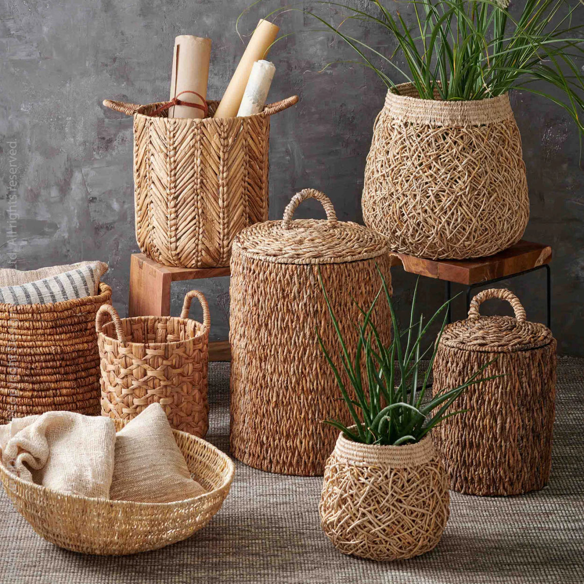 No assembly required. Simply unpack and place your potted plants inside. The neutral color works with bohemian, coastal, Scandinavian, or minimalist interiors. Position on floors, plant stands, or tables to add organic texture to living rooms, bedrooms, or covered outdoor spaces.