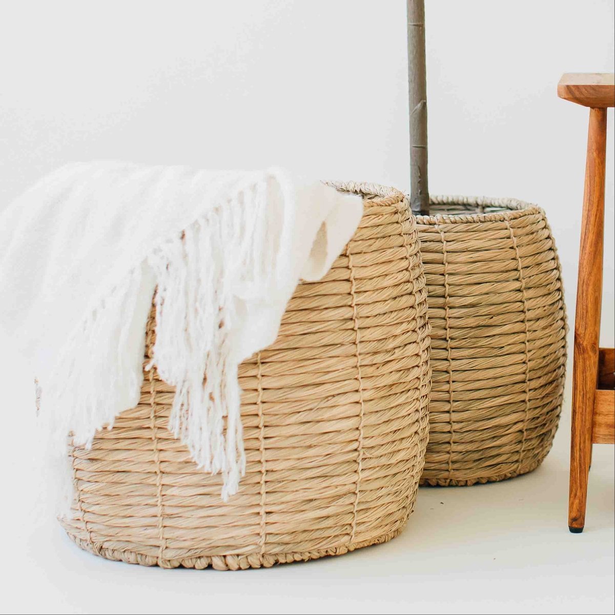Handwoven Water Hyacinth Basket Set of 2 - Natural Storage