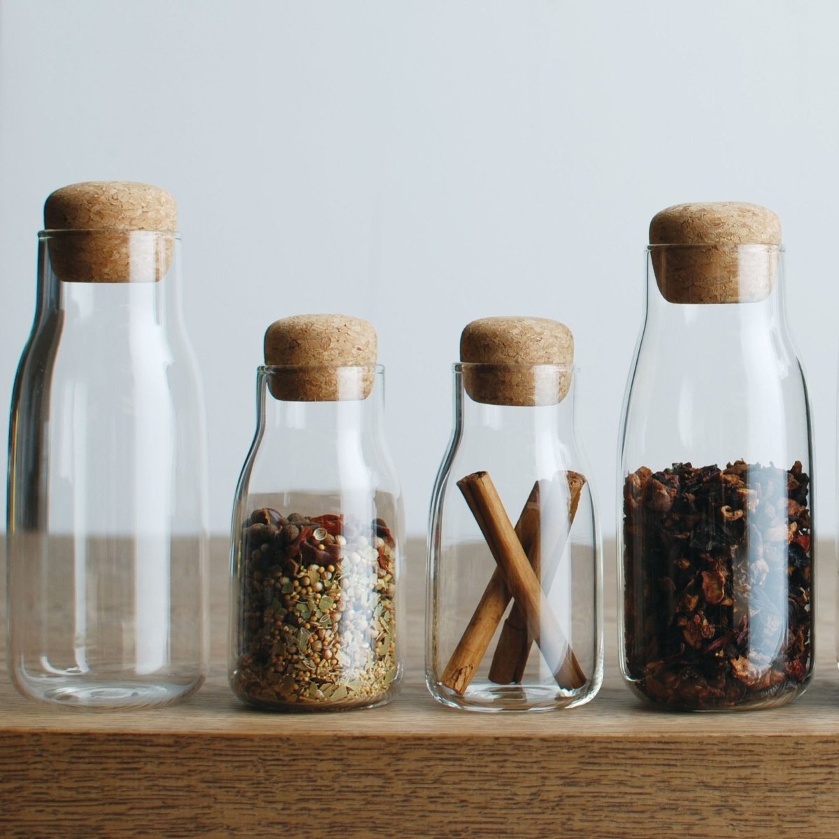 BOTTLIT canisters add an accent to your interior space. The bottle shape is comfortable to grip and contents come out easily by tipping. The 600ml size is suitable for coffee beans or granola, 300ml size for tea leaves or nuts, and 150ml size for spices or herbs.