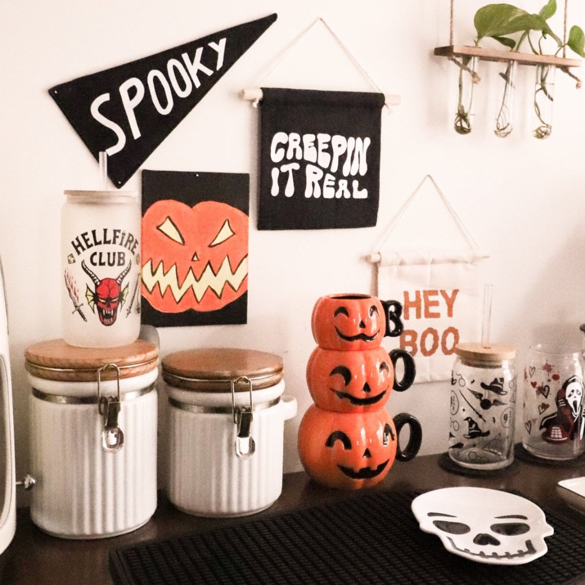 Use this hang sign as standalone wall art or combine it with other Halloween decorations for a cohesive seasonal display. The neutral black-on-black color scheme pairs well with any Halloween color palette, from classic orange and black to modern pastels or all-white schemes. The minimalist design works in entryways, living rooms, bedrooms, or office spaces.