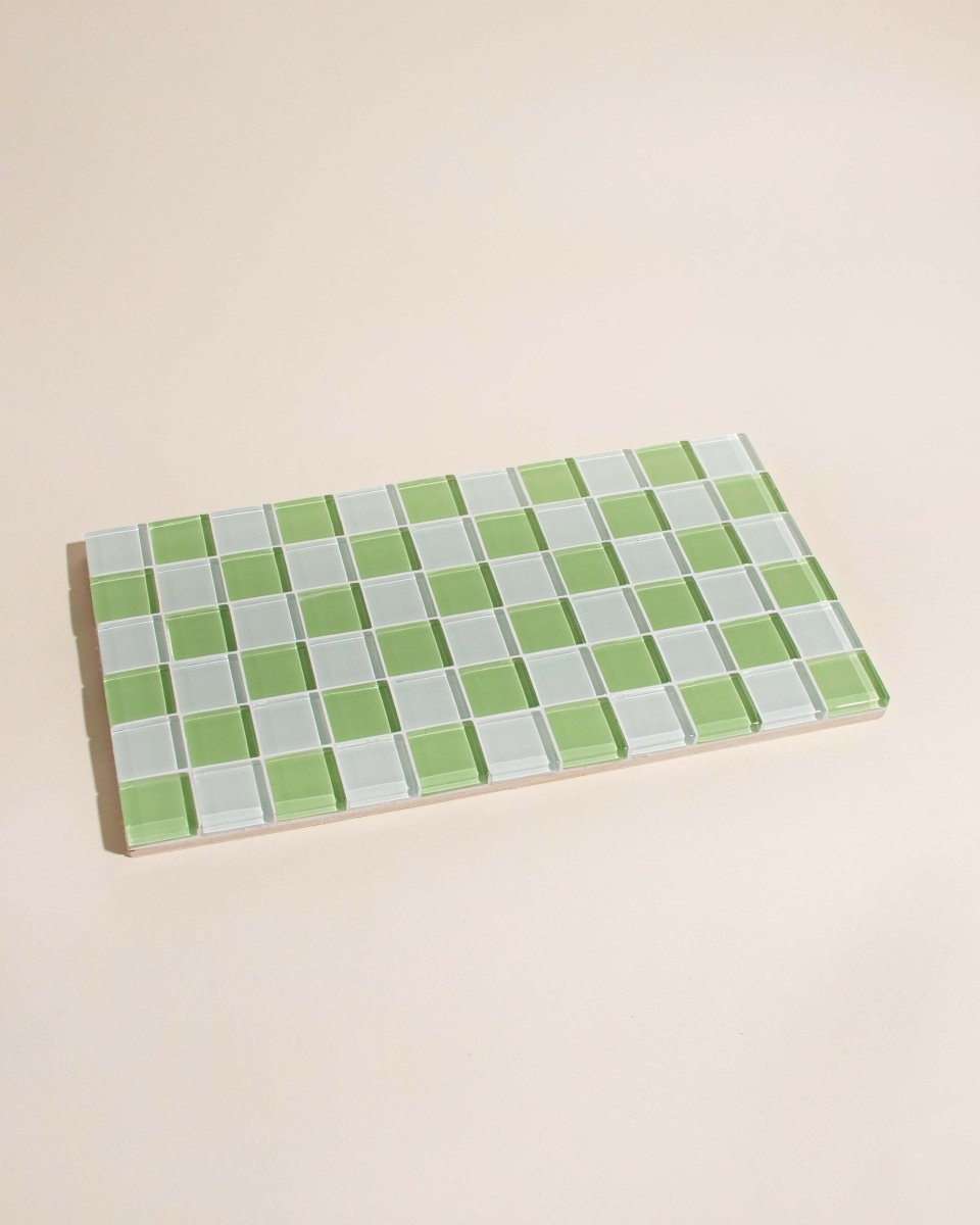 The green and white color combination adds a modern touch to any room, complementing both contemporary and traditional decor styles. Whether you're looking for a hostess gift or a functional accent piece for your own home, this glass tile tray delivers quality craftsmanship and versatile style. The milky white accents contrast beautifully with the pistachio green base, creating visual interest without overwhelming your existing decor.