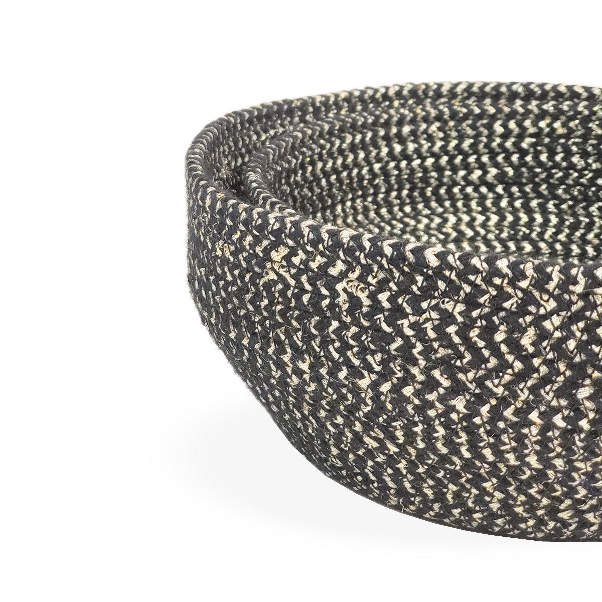 This versatile set of baskets store anything and everything. Stylish - with golden yarn mesh - and the multi-functional way to organize your favorite space with an easy solution for stacking and storing your stuff - including seasonal fruit, keys and stationary, and all manner of household items. Each Basket is handcrafted and naturally dyed, from start to finish, by fair trade artisans in Bangladesh.
