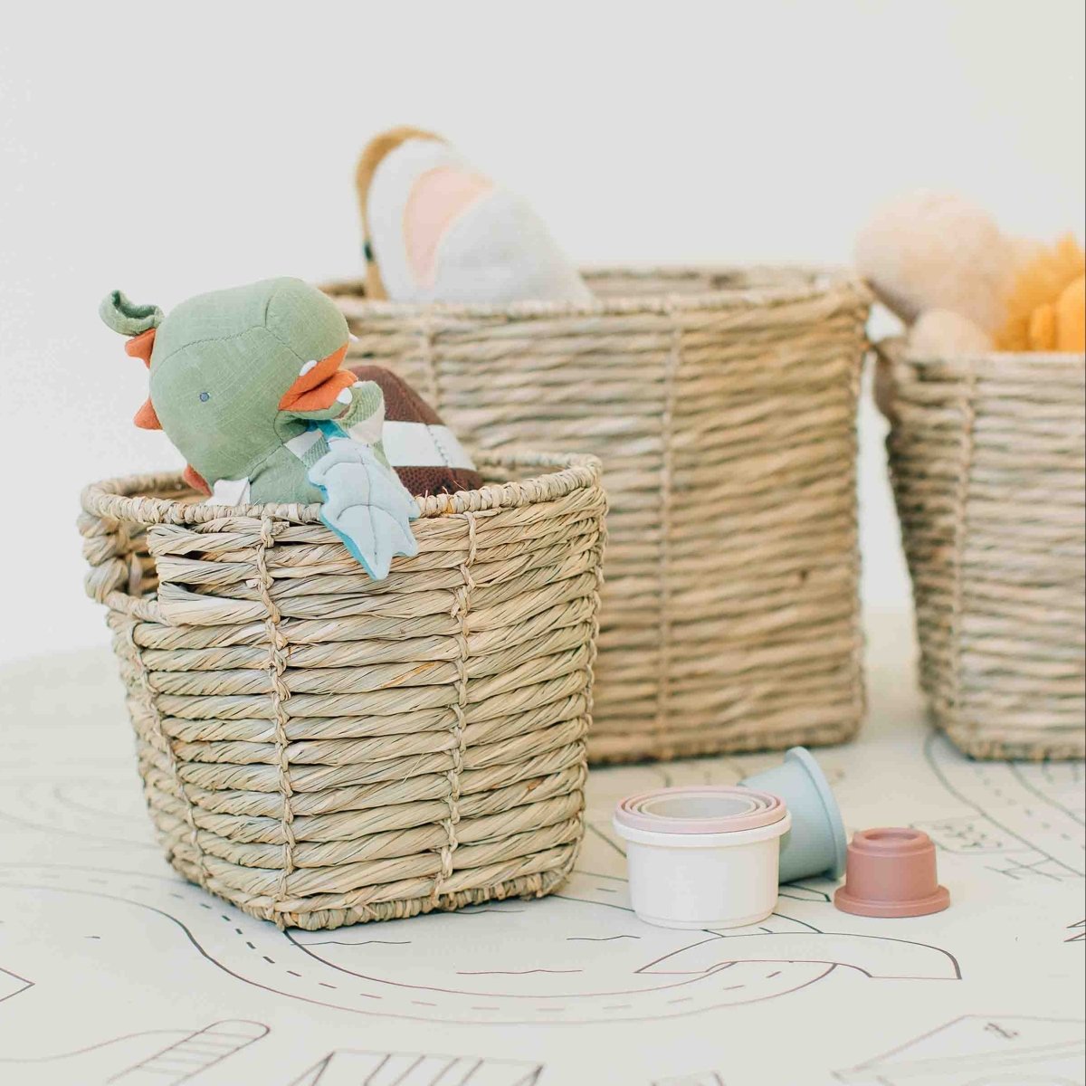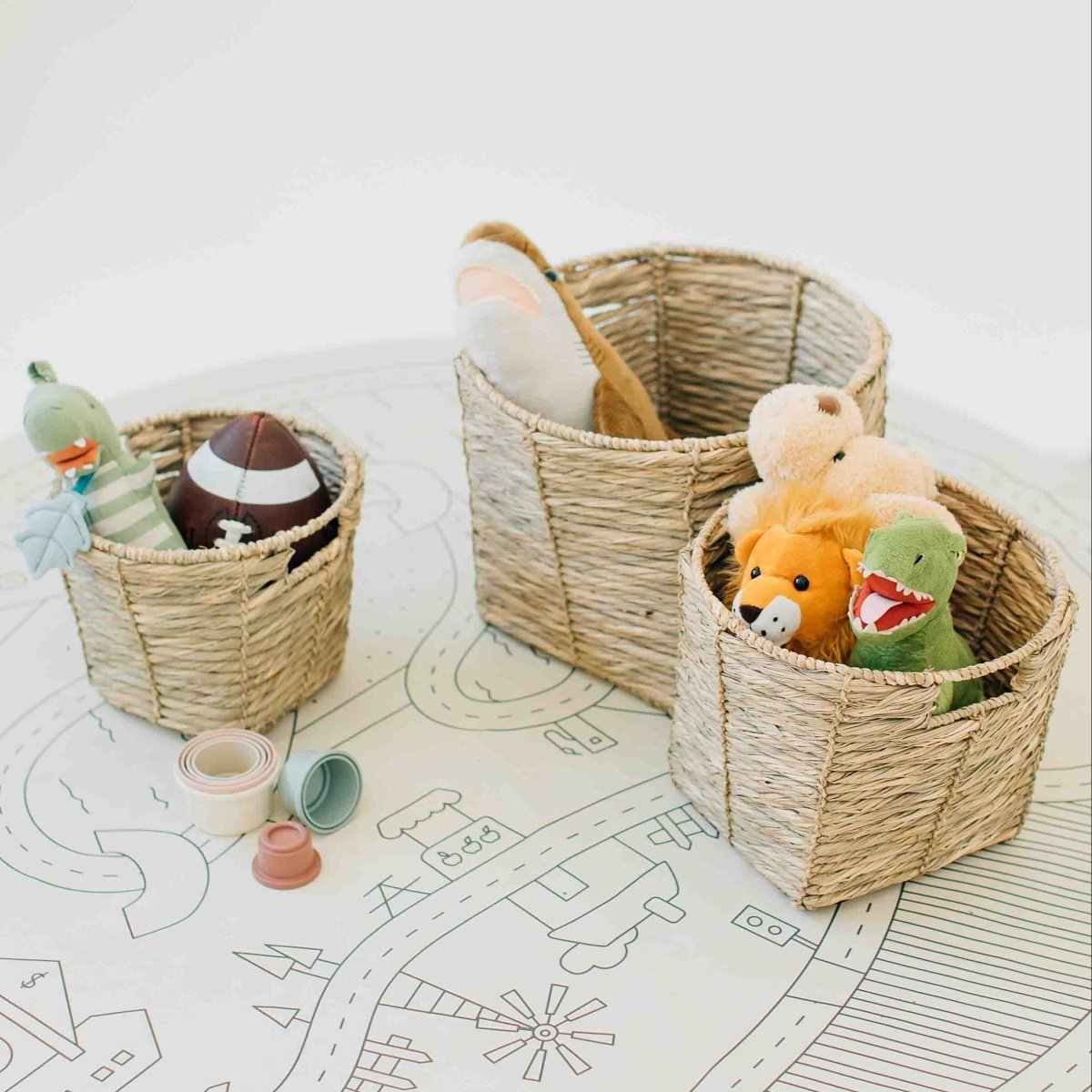 Each basket in the set serves multiple storage purposes throughout your home. Use them to organize toys in playrooms, display plants in living spaces, contain bathroom essentials, or corral remotes and accessories in entertainment areas. The natural water hyacinth material complements various interior design styles including coastal, farmhouse, and bohemian aesthetics.