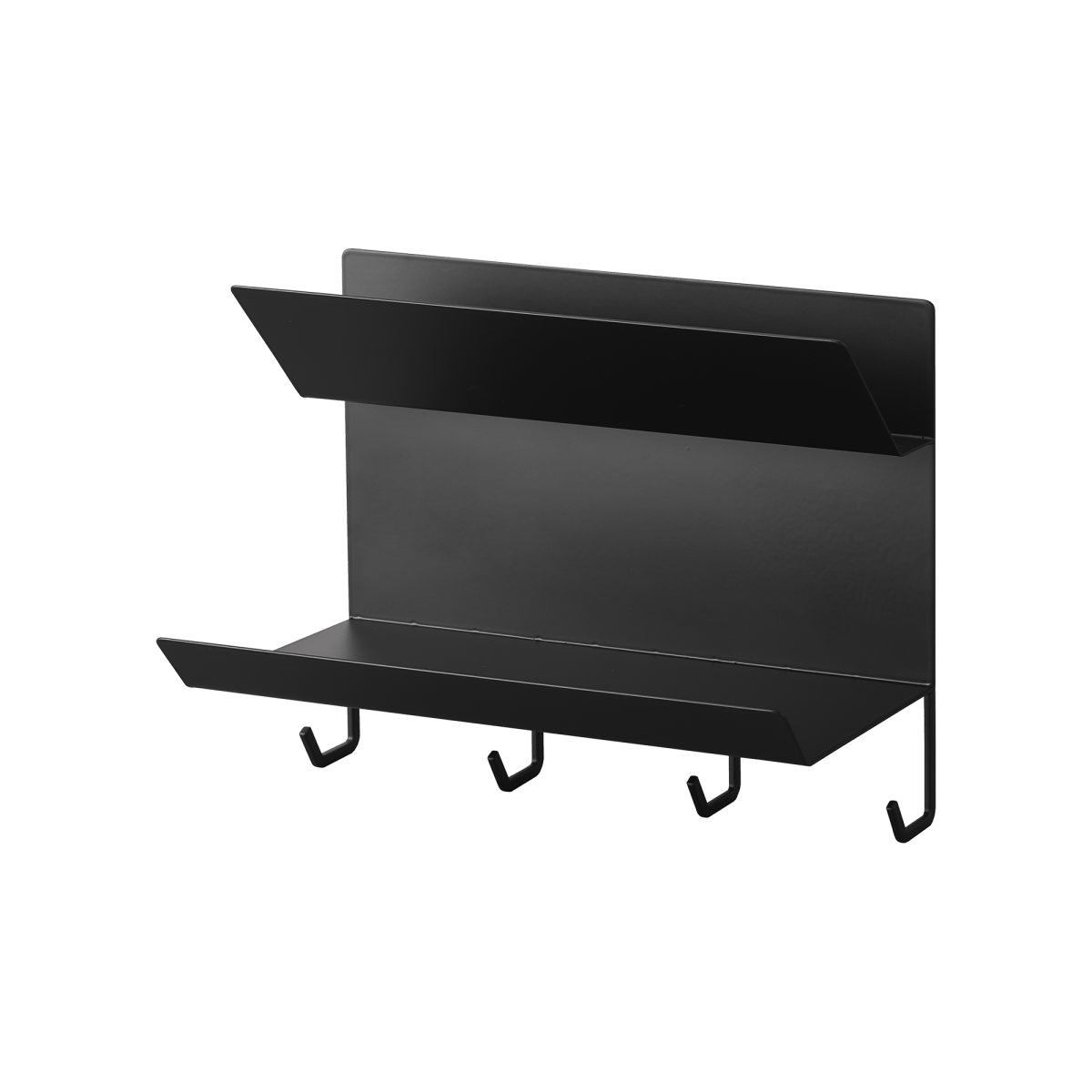 Instantly create all-in-one storage for your keys, gloves, caps, sunglasses, lip balm, and other out-the-door necessities so they're ready to grab as you dash out the door. With two storage shelves and four hooks for keys and other hanging items, this magnetic entryway rack provides ample storage despite the compact design.
