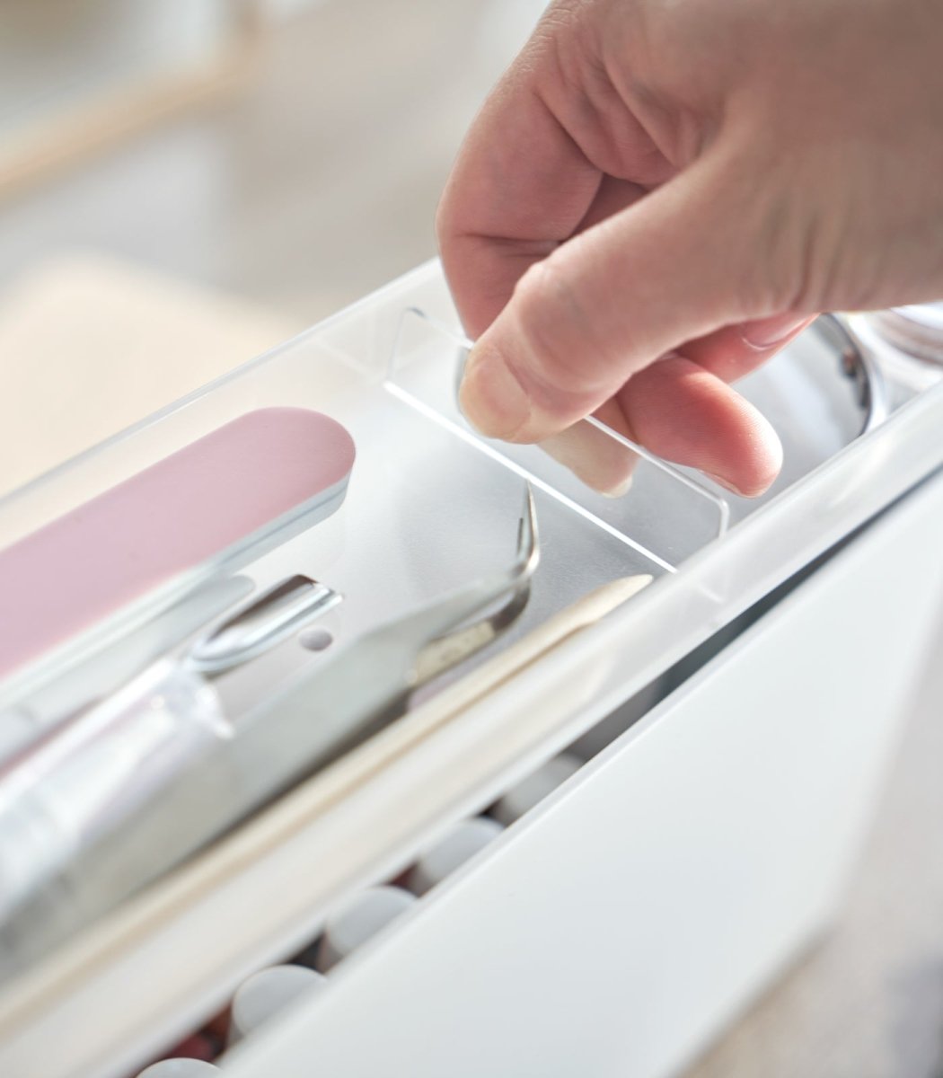 From bottom and top coats to glitter and gem finishes, keep your nail art goods looking tidy and ready to go for the next time inspiration strikes! Store your nail polish in the bottom and smaller tools like nail files, nail nippers, and cuticle pushers in the tray insert. Create a smart-looking personal nail salon without taking up much space on your vanity or bathroom counter.
