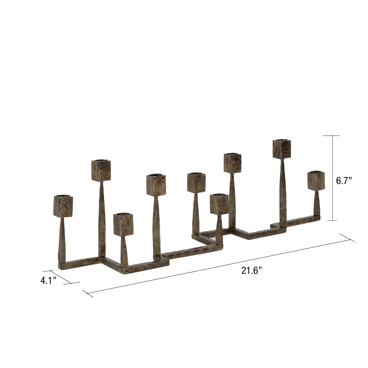 Designed to accommodate nine standard taper candles, this candelabra provides substantial illumination and visual impact. The 21.6-inch length offers generous spacing between candle positions, allowing for safe burning while creating a dramatic linear arrangement. Whether used with all nine candles or a selective few, the configuration adapts to your desired ambiance.