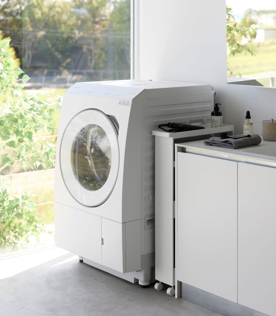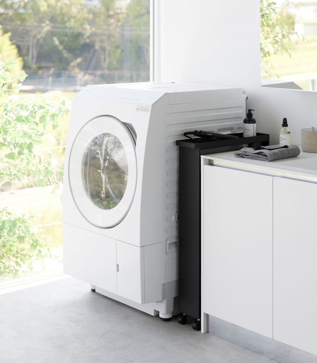 This slim steel rolling storage cart transforms narrow, unused spaces into functional storage areas. At just 5.12 inches wide, it fits between appliances, in bathroom gaps, or alongside furniture while providing four tiers of organized storage.