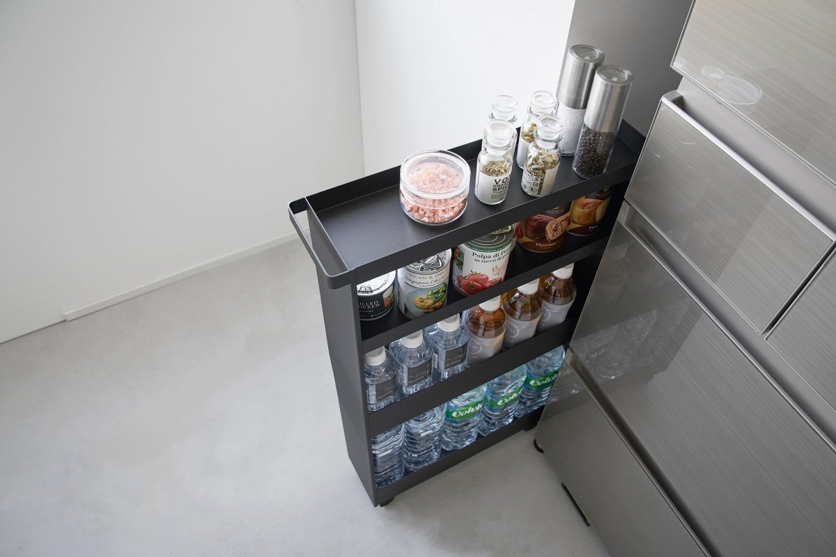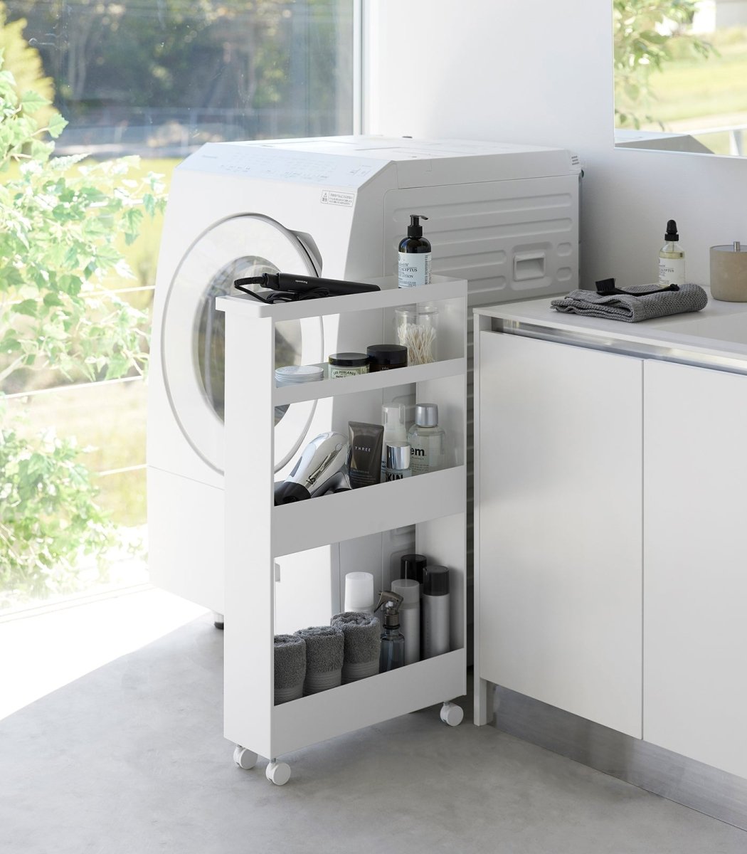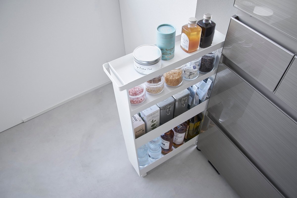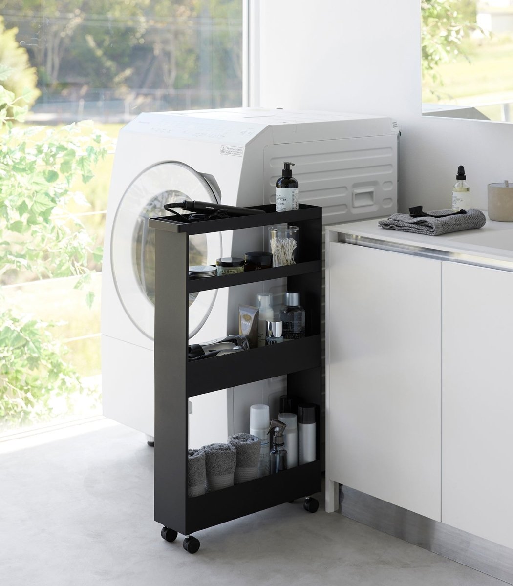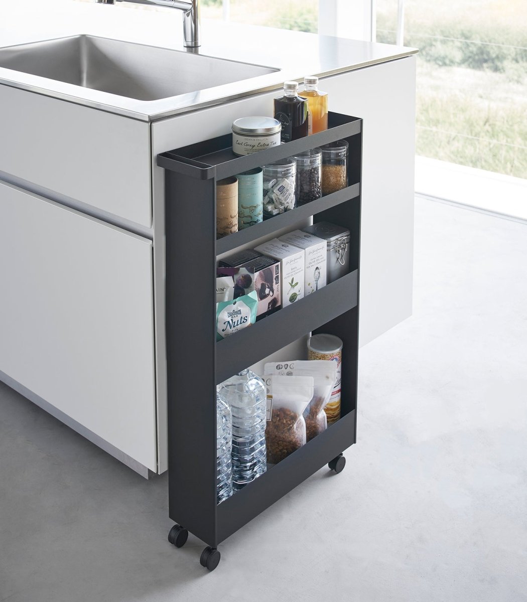 Use this mobile cart in multiple rooms throughout your home. Stock it with spices and cooking oils in the kitchen, cleaning supplies in the laundry room, toiletries in the bathroom, or office supplies in your workspace. The narrow profile makes it ideal for apartments, small homes, or anywhere space is limited.