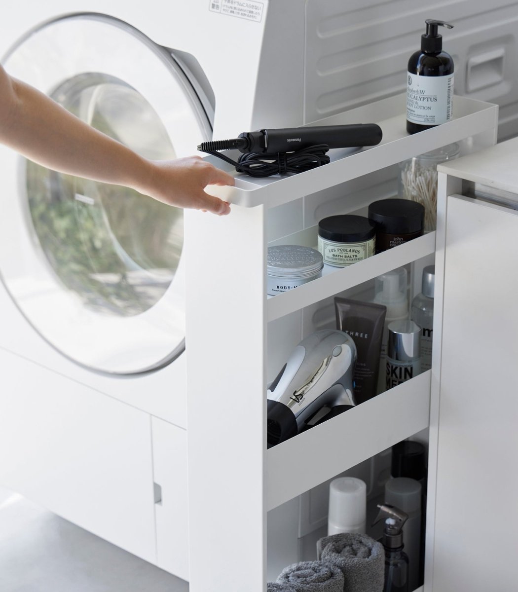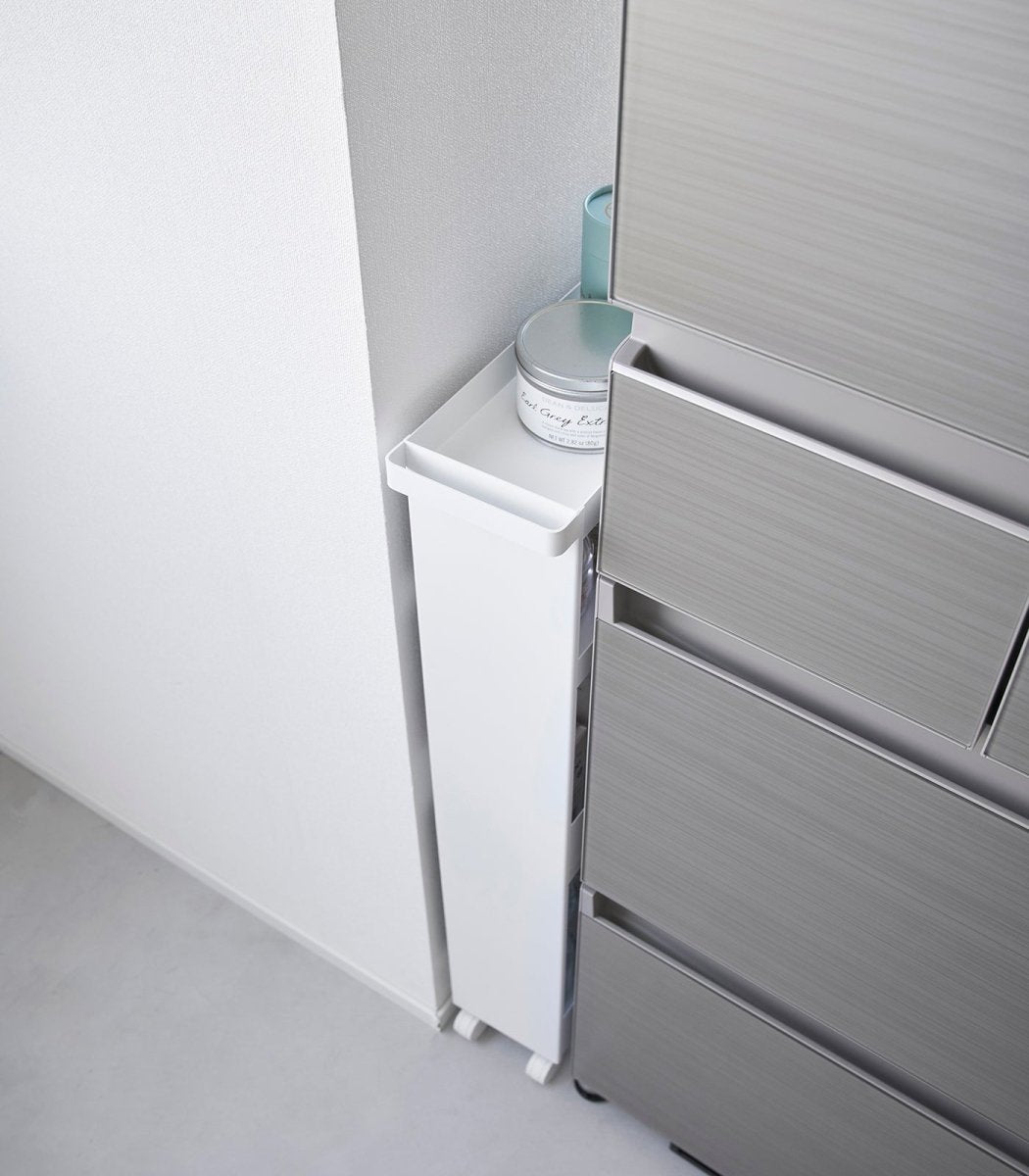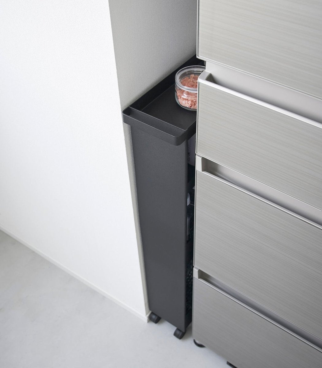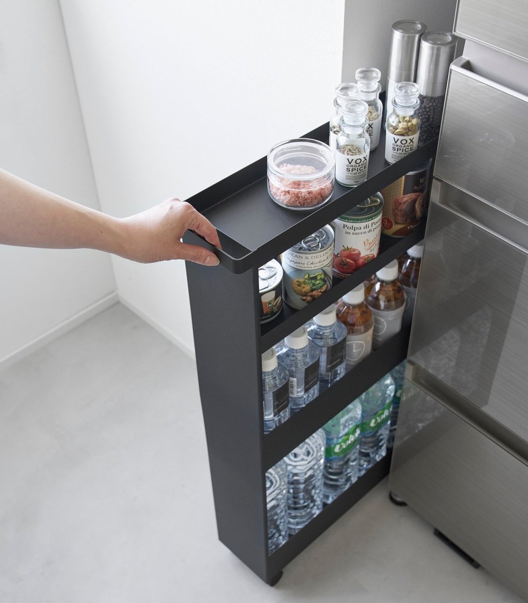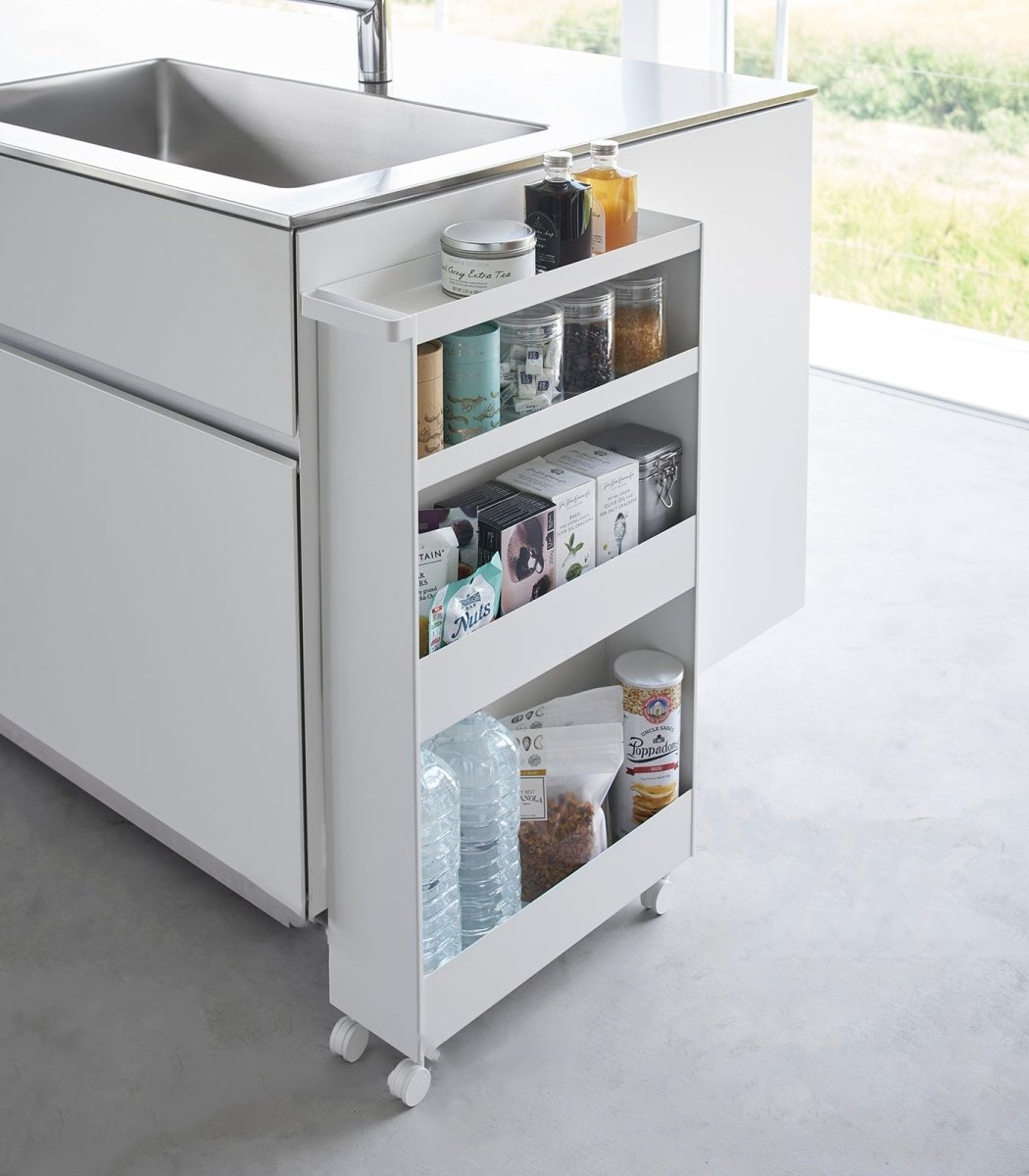 Use this mobile cart in multiple rooms throughout your home. Stock it with spices and cooking oils in the kitchen, cleaning supplies in the laundry room, toiletries in the bathroom, or office supplies in your workspace. The narrow profile makes it ideal for apartments, small homes, or anywhere space is limited.