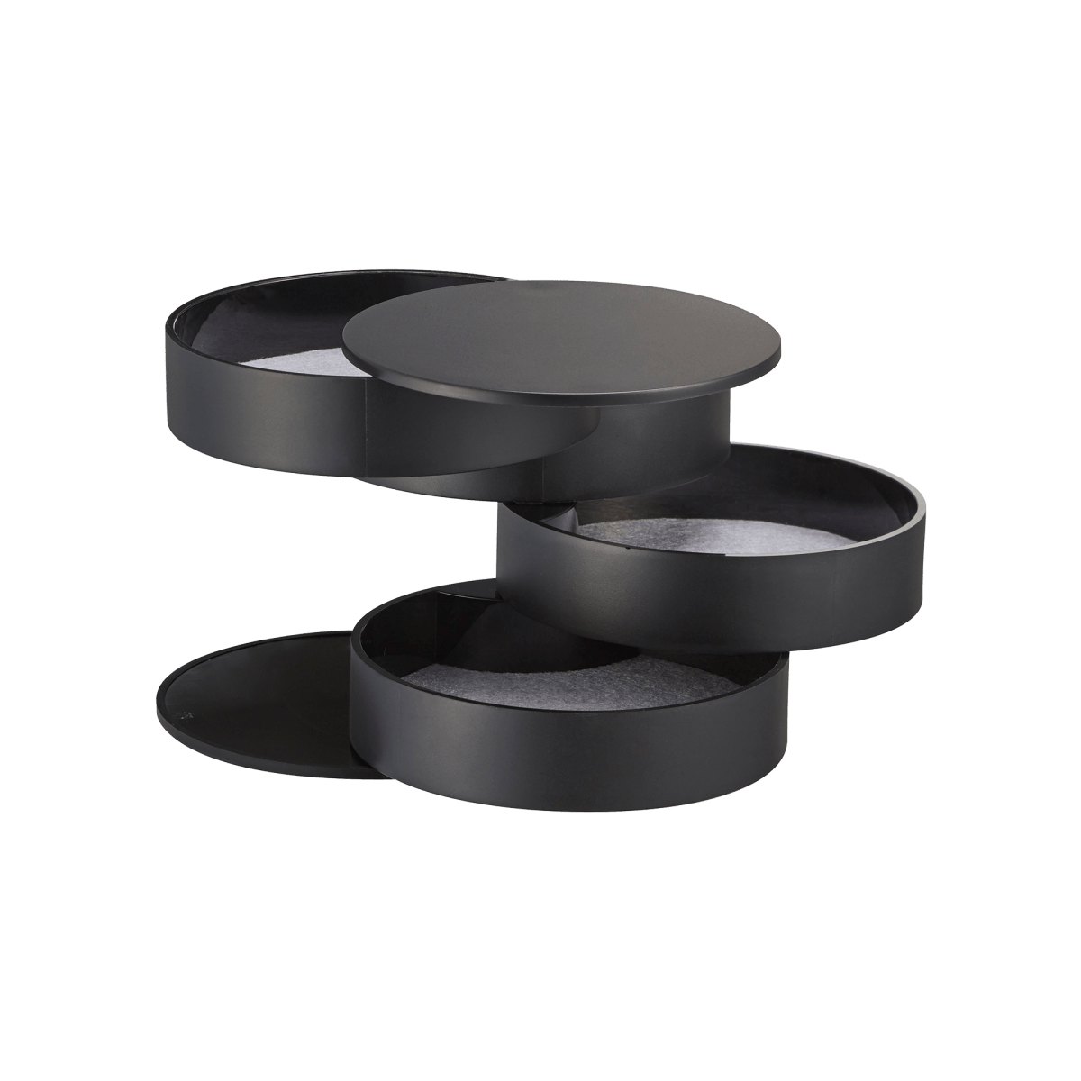 These delightfully dainty, tiered jewelry towers feature four surprisingly roomy, swivel-out compartments. Fan out and nestle in precious stones and strands to keep them tucked away and tangle-free.