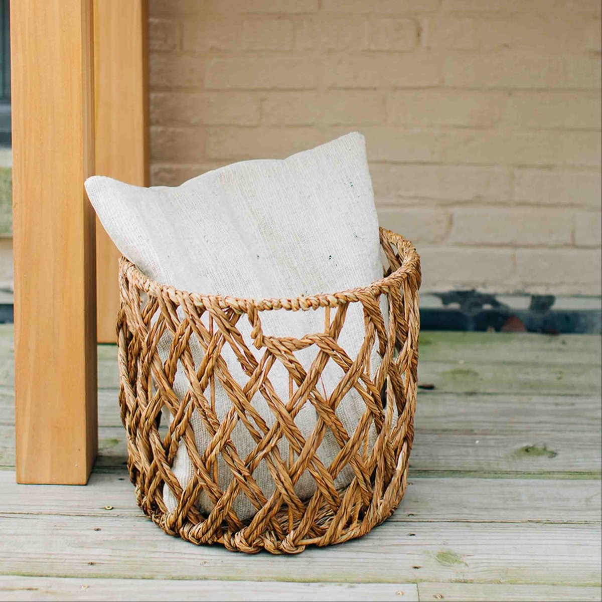 The natural fiber material complements various interior styles, from coastal to bohemian aesthetics. The neutral tone integrates seamlessly with existing decor while adding organic texture to any room. Use them in living areas for throw storage, bathrooms for towels, or bedrooms for organizing accessories.